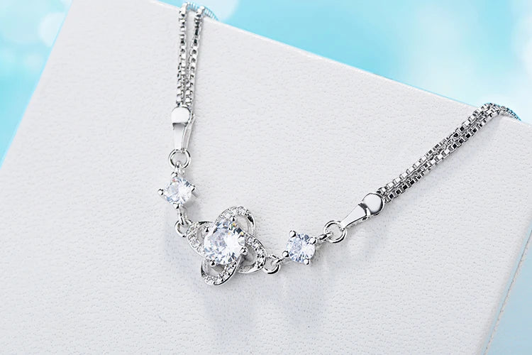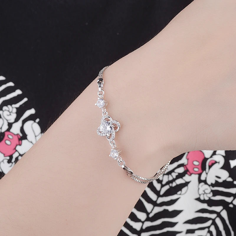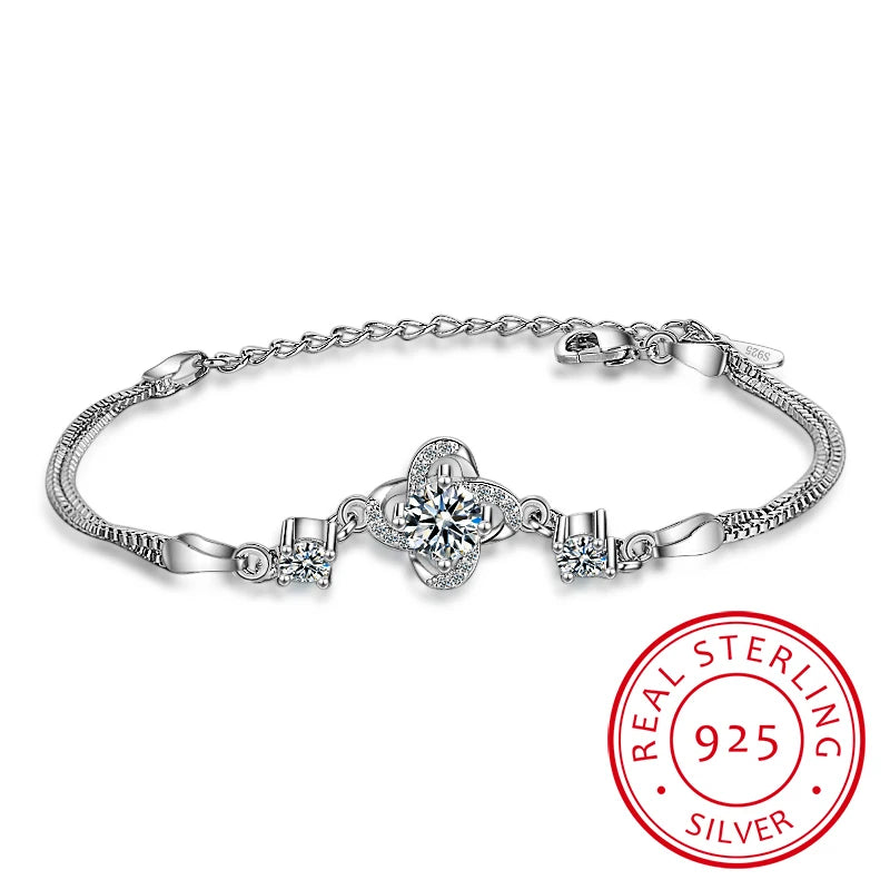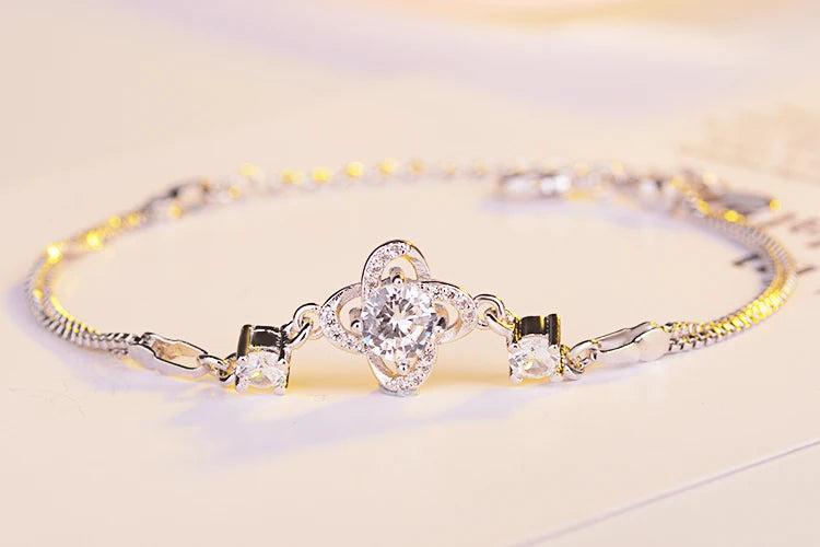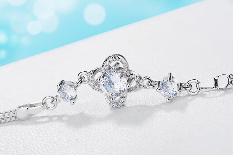 Add a touch of charm to your look with this stunning four leaf clover heart bracelet made of 925 sterling silver and Austrian crystals.