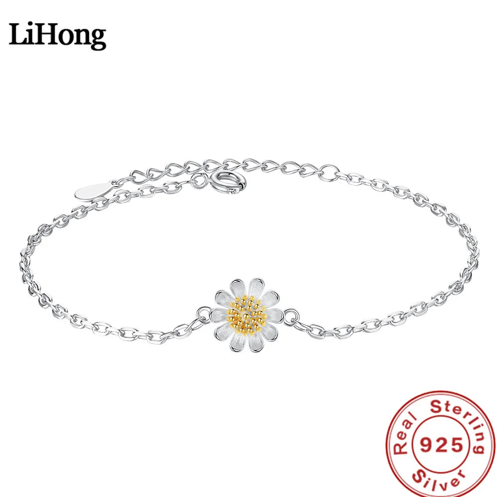 This delicate bracelet features a sunflower, small daisies, and chrysanthemum design. Made from high-quality S925 sterling silver, it is a perfect gift for women.