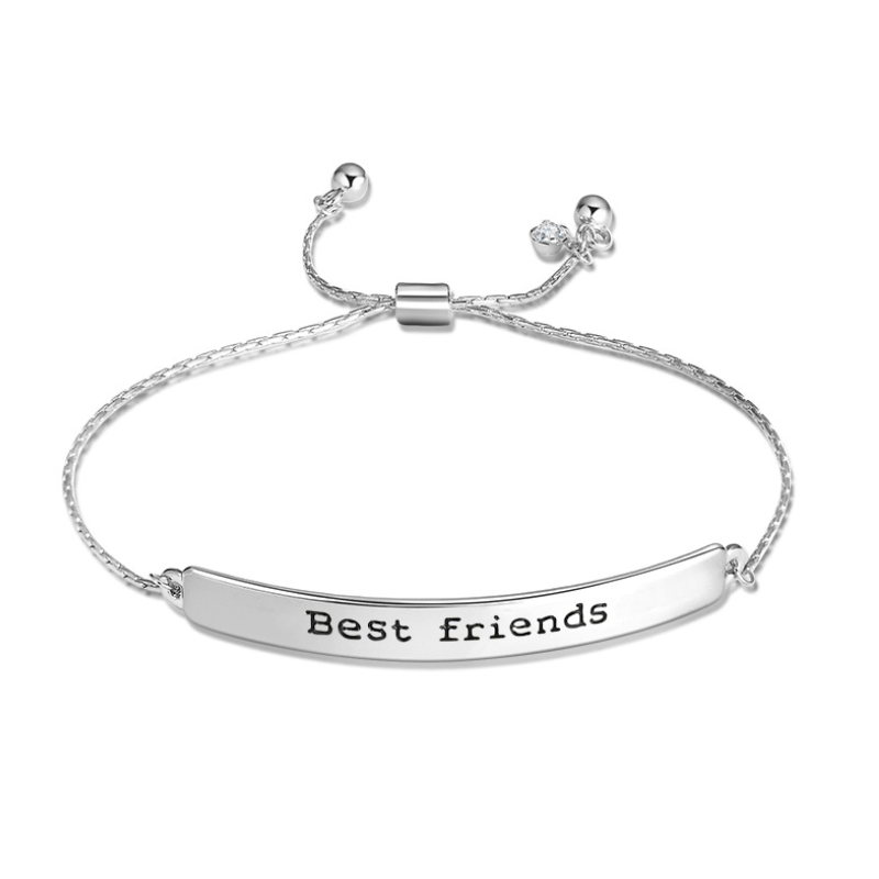 Friendship is a gift in itself. This dainty curved bar bracelet is elegant and minimal for everyday looks with an adjustable bolo clasp. It features a cubic zirconia halo drop at the clasp to create a dazzling look that makes a subtle statement. This engraved bracelet is a perfect Friendship Day gift. Portray your love, affection, and lifelong togetherness for your bestie with this bracelet.