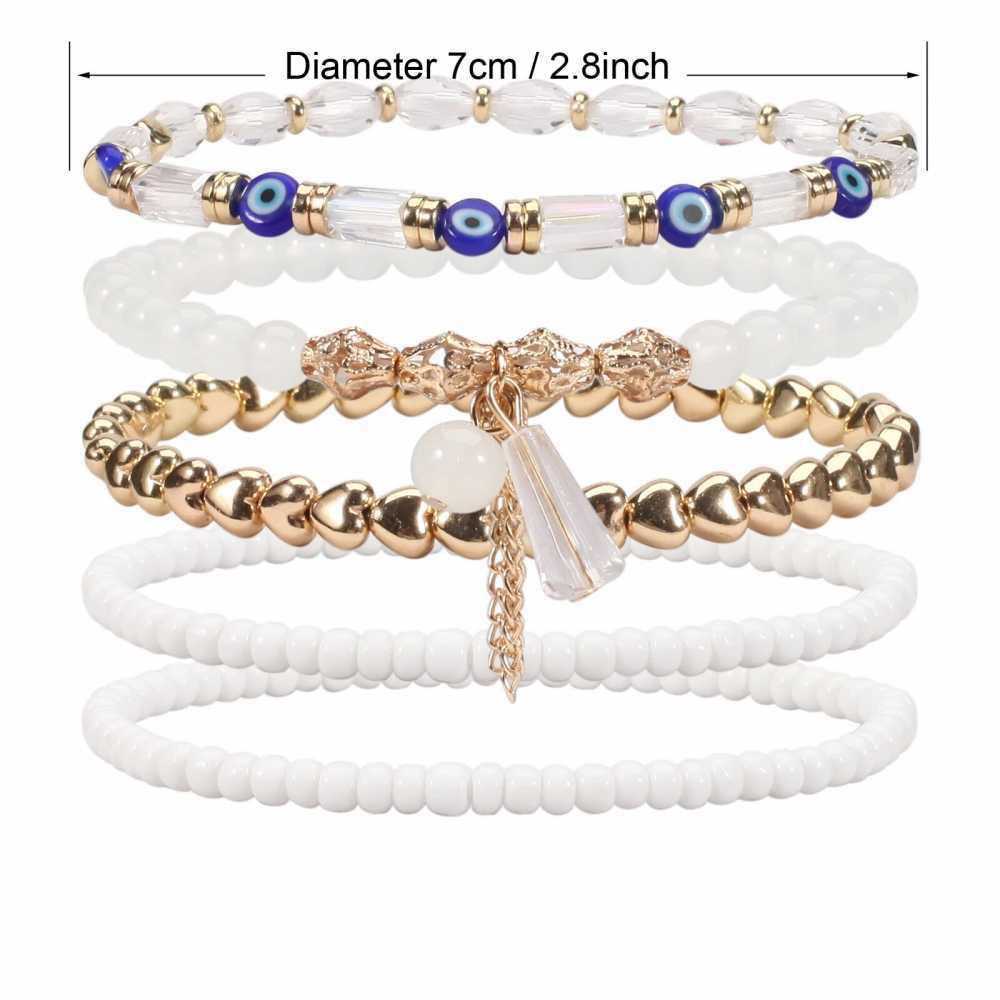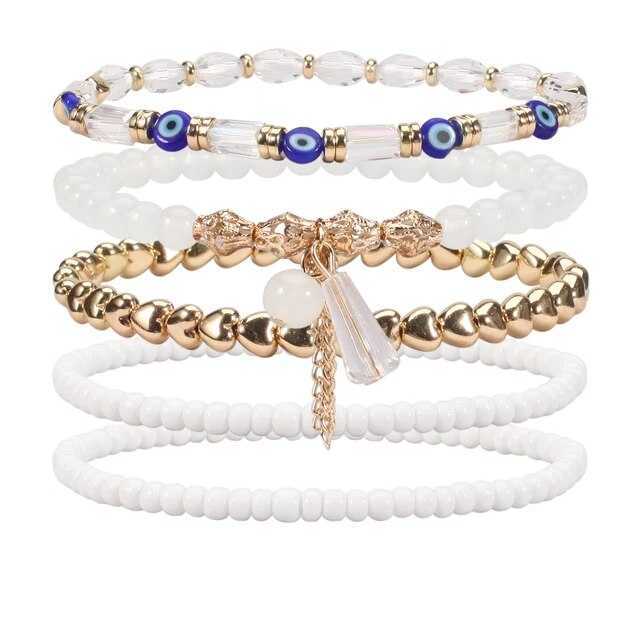 Women's Boho Style Gold Heart And Evil Eye Beaded Charm Bracelet