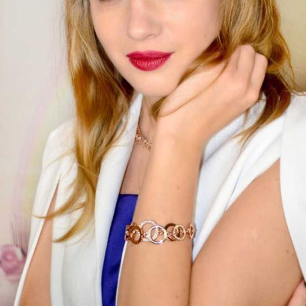 The sparkling crystals are delicately arranged in small circles on the rose gold plated string to celebrate everyone's favorite rose gold color.