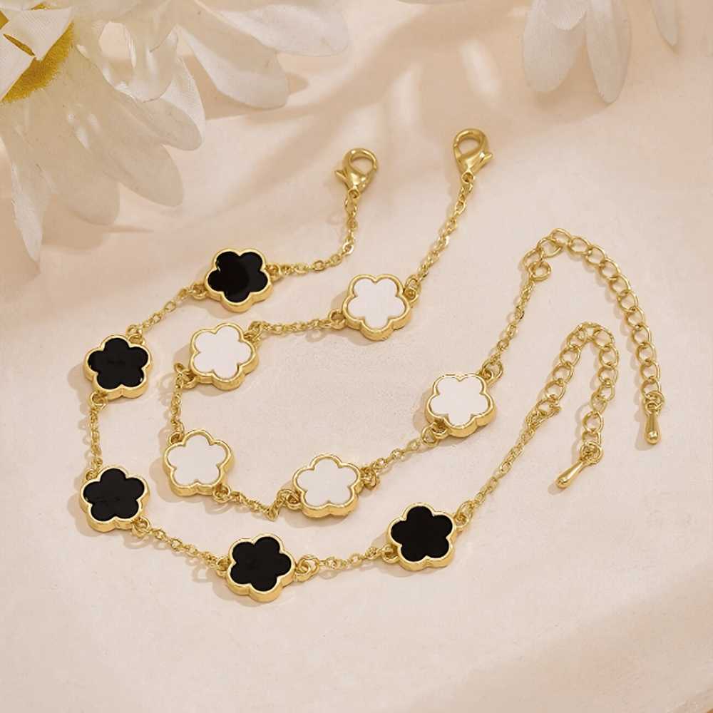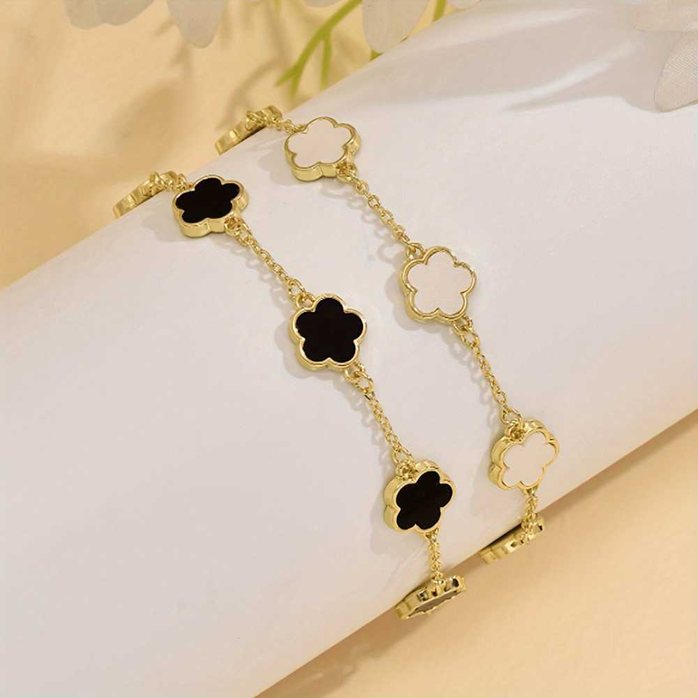 Women's Combo Of 2 Piece Gold Plated Bracelet With Classic Five Flower Design