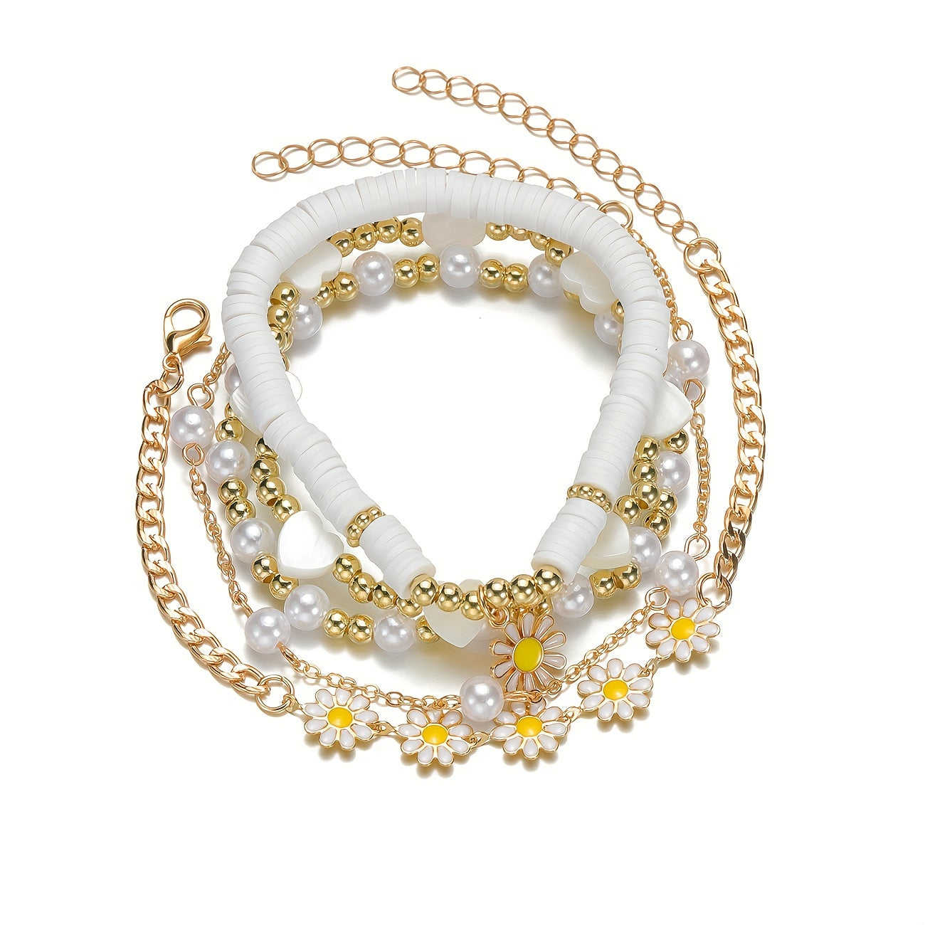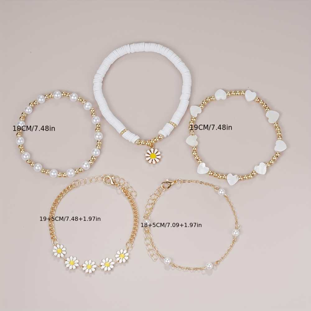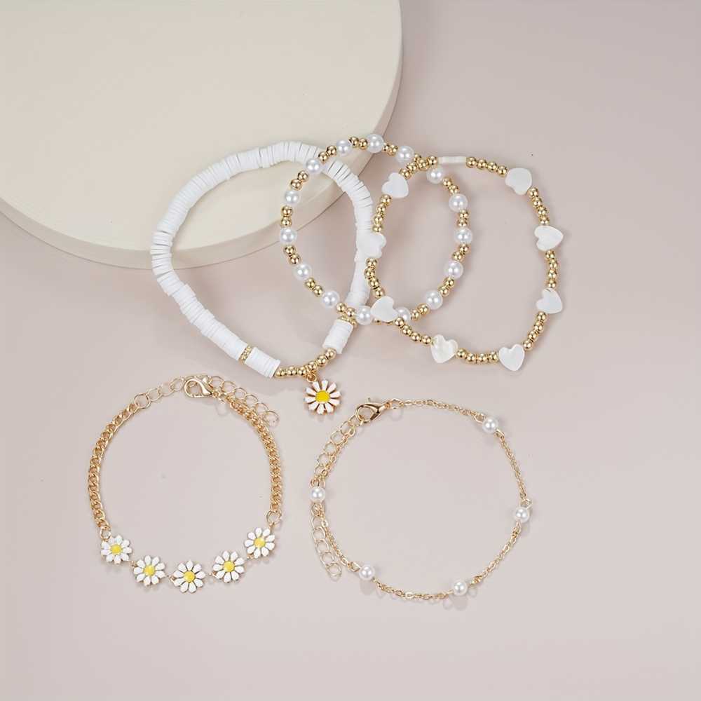 Womenu2019s Gold Plated Combo of 5 Pieces Daisy Flower Bracelets