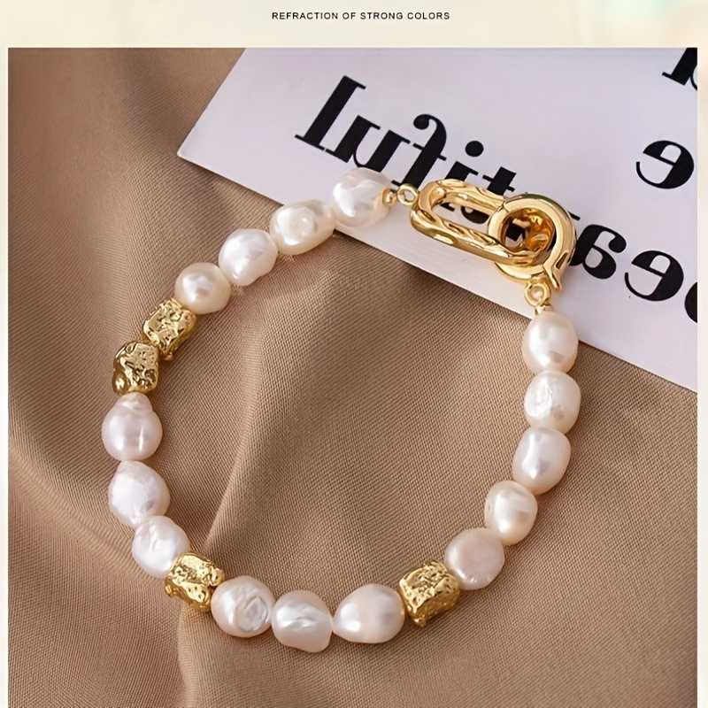 Bling Queen is an affordable fashion jewellery brand with various product types like bracelets, necklaces, earrings, rings, etc. suitable for women, men and kids. The women's gold plated white pearl and gold nugget beaded chain bracelet exemplifies elegance and sophistication, combining classic elements with contemporary flair. This exquisite piece features an array of lustrous white pearls, each meticulously chosen for its exceptional quality and smooth surface. The pearls are beautifully interspersed with distinctive gold nuggets, adding a rich texture and a modern twist that sets this bracelet apart. The design incorporates a delicate gold plated chain that enhances the overall aesthetic, providing a warm glow that complements the pearls. The gold plating is carefully applied to ensure a lasting shine, allowing the bracelet to maintain its beauty over time.