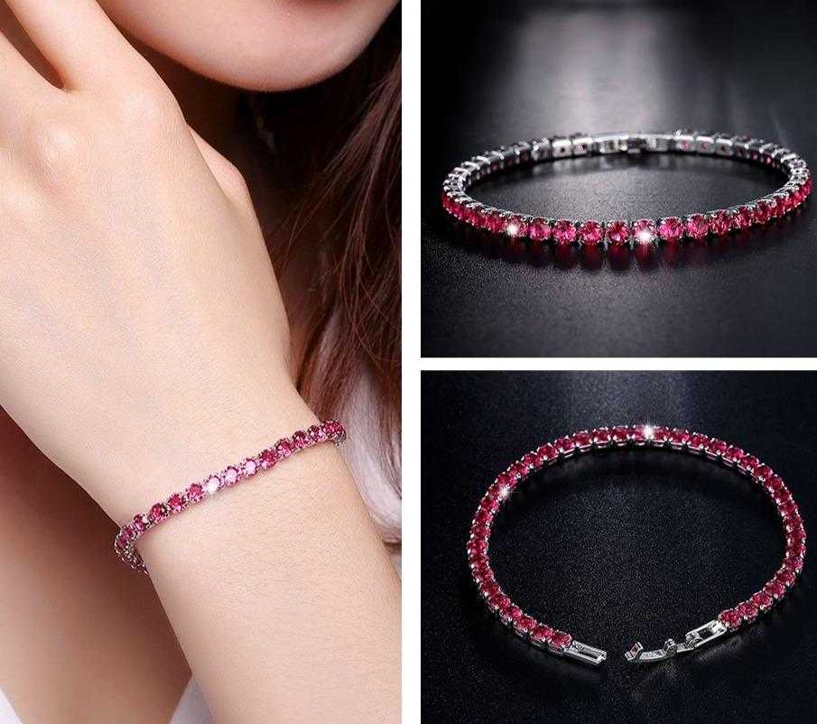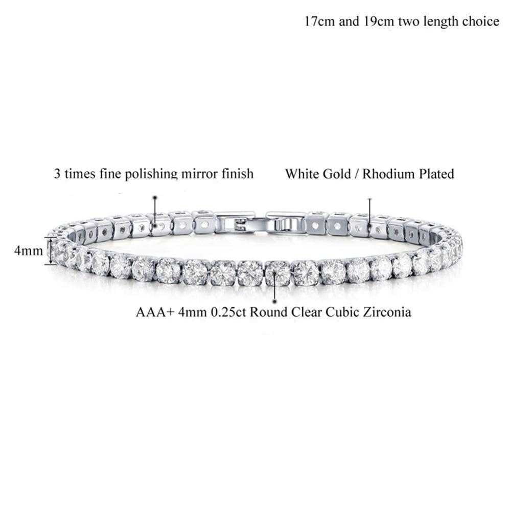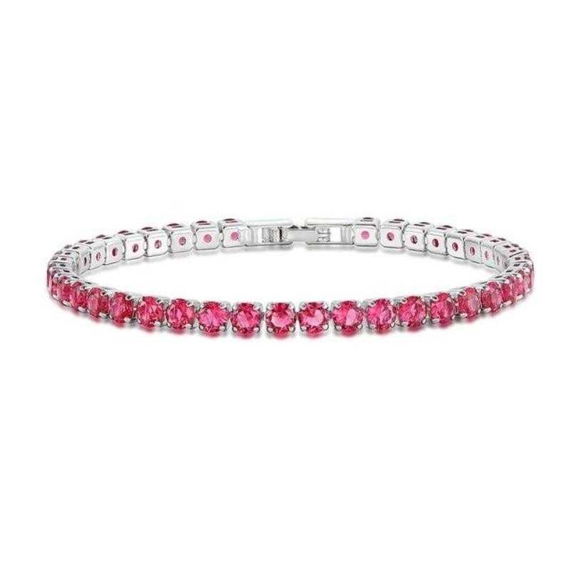 The bracelet features a classic tennis bracelet design, characterized by a continuous line of stones or embellishments set in a symmetrical pattern along the length of the bracelet. This design is timeless and versatile, suitable for both casual and formal occasions. This closure style offers a secure fit while maintaining a seamless appearance when fastened. It typically involves a small tab that folds over and snaps into place, ensuring that the bracelet stays securely on the wrist. The silver plated metal is meticulously polished to a smooth and shiny finish, enhancing its reflective properties and overall aesthetic appeal.