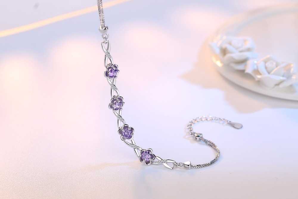 Women's Plum Flower And Infinity Bracelet With Cubic Zirconia