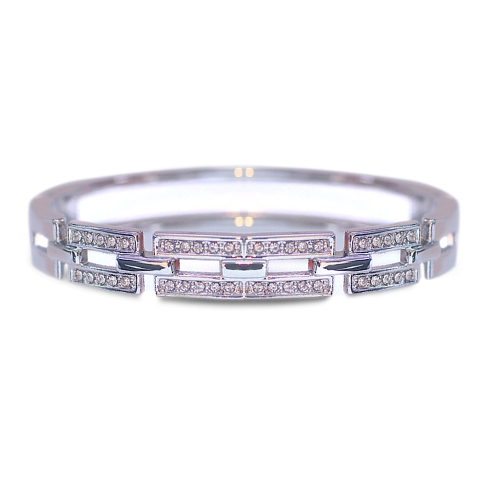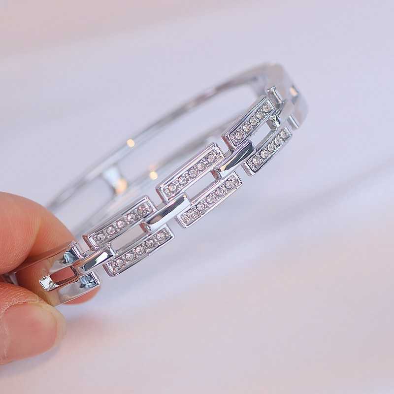 Women's Rectangle Link Cuff Bracelet Studded With Rhinestones