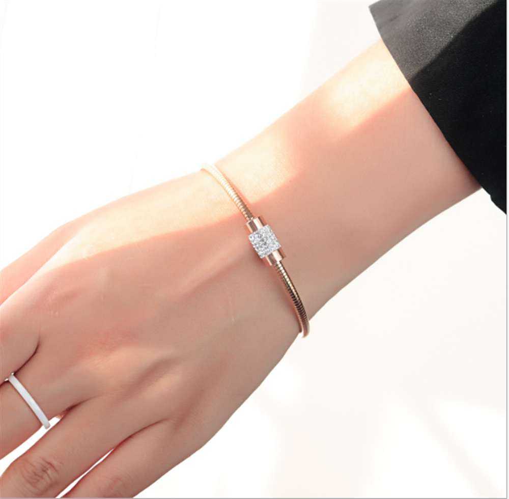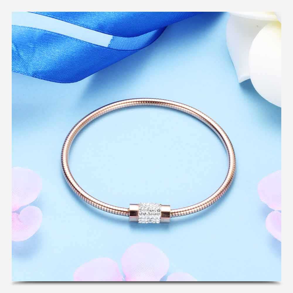 Women's Rose Gold Magnetic Clasp Crystal Studded Bracelet