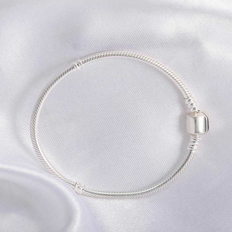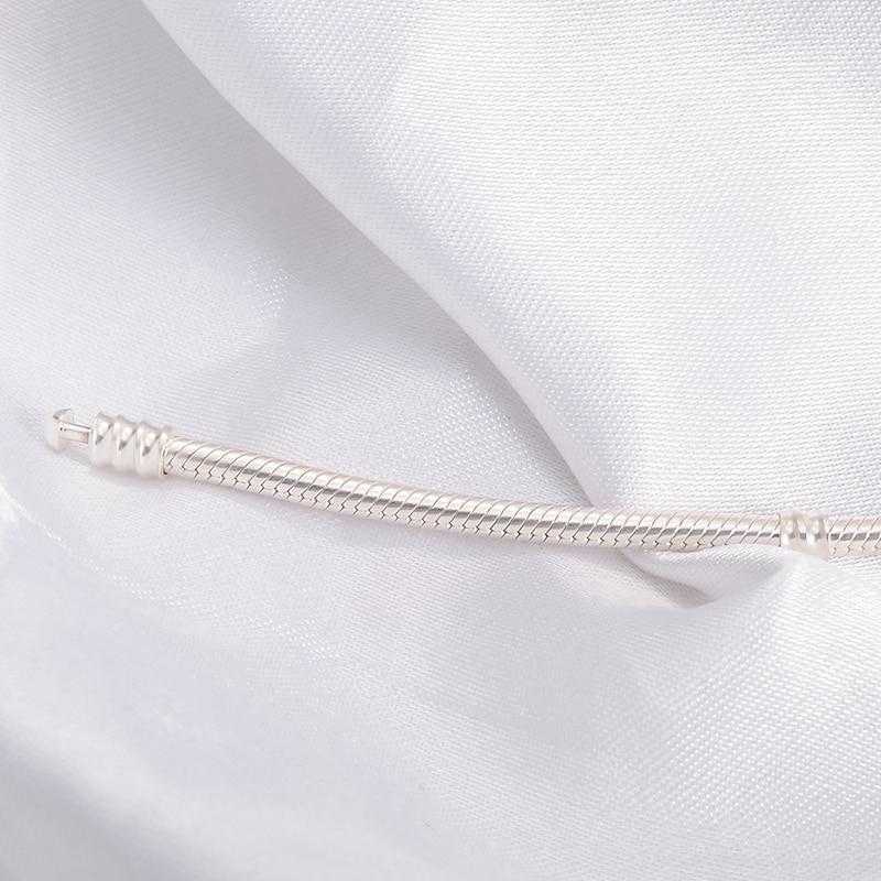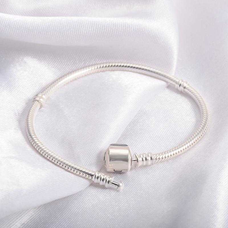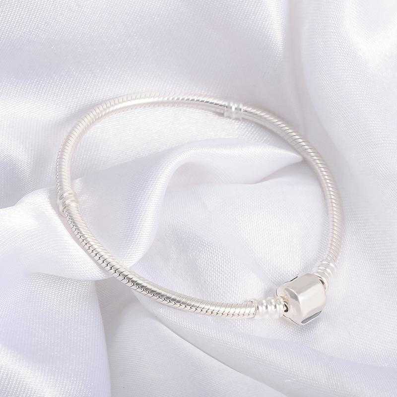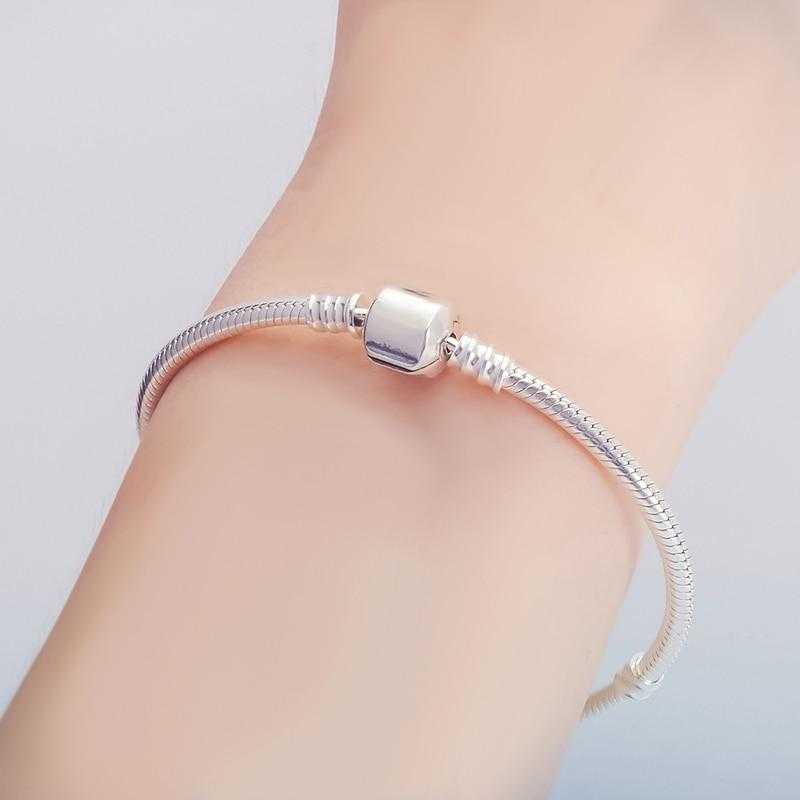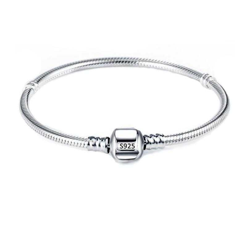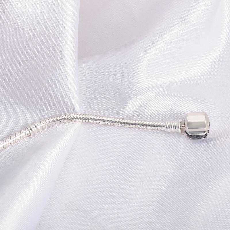 This timeless silver plated bracelet is a must-have. Stack it with other lovely charm beads to create your own style, or combine it with other sparkling charm beads for a boho-chic look. This snake-chain bracelet features a magnetic clasp lock. Create and collect your milestones and moments as you add the significant charm beads.