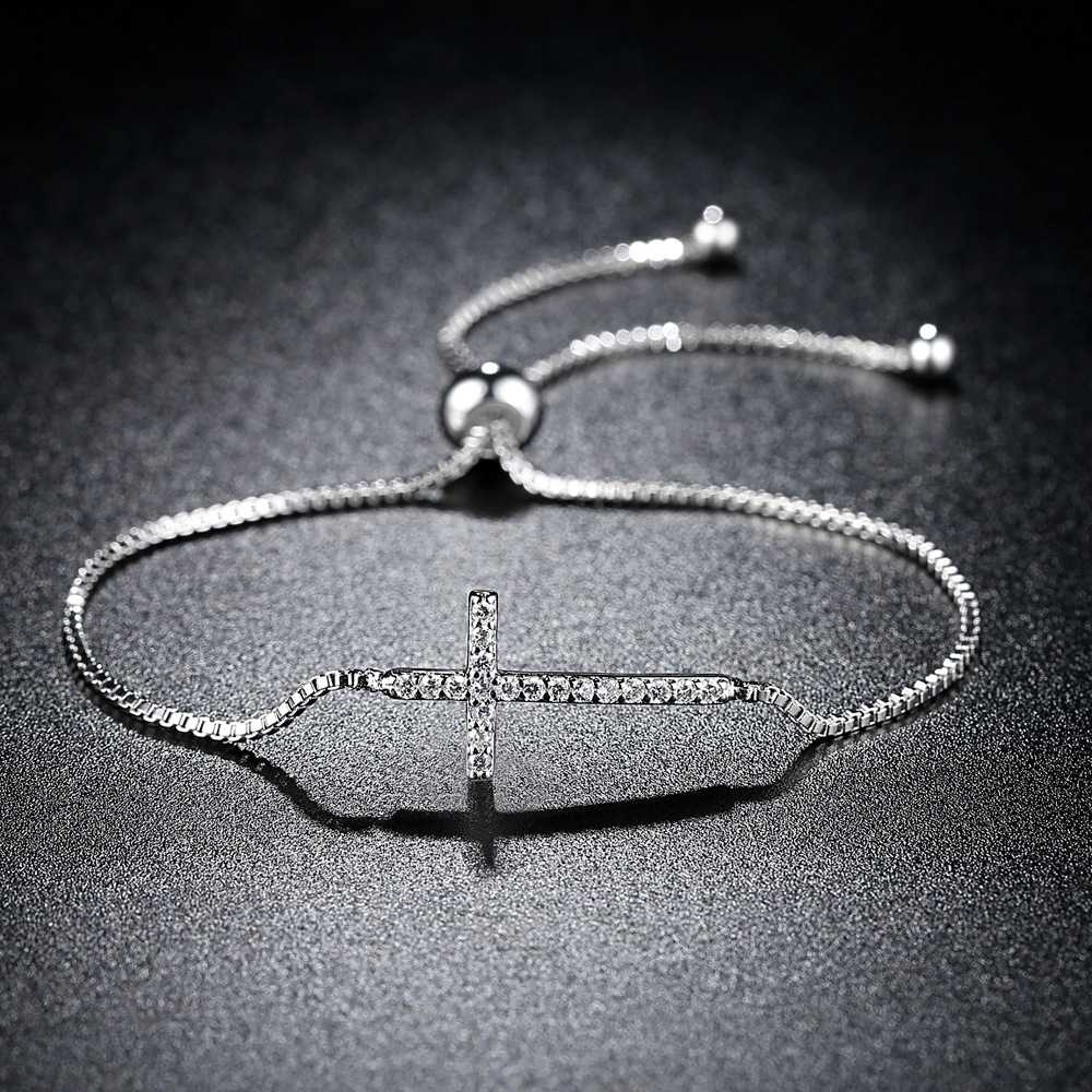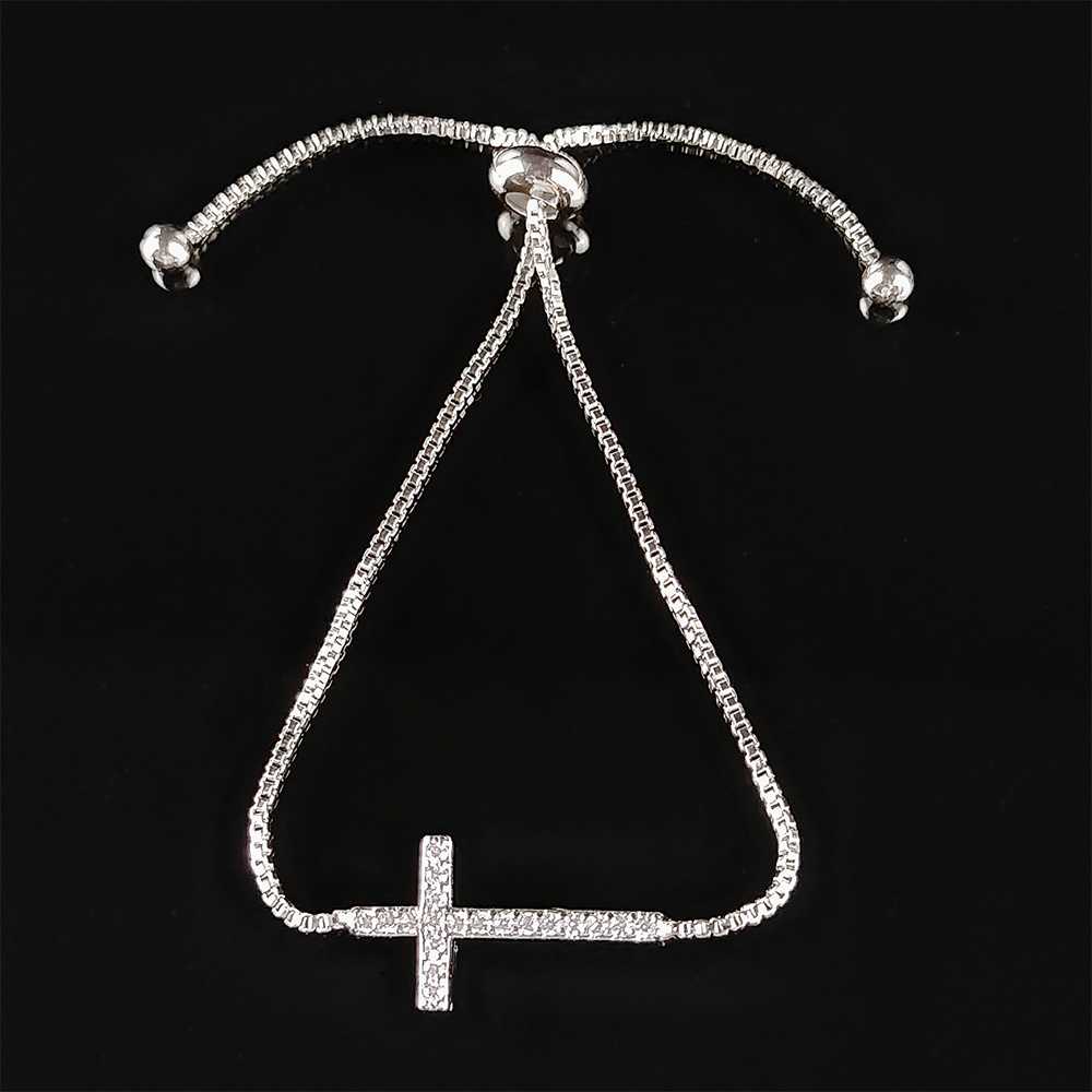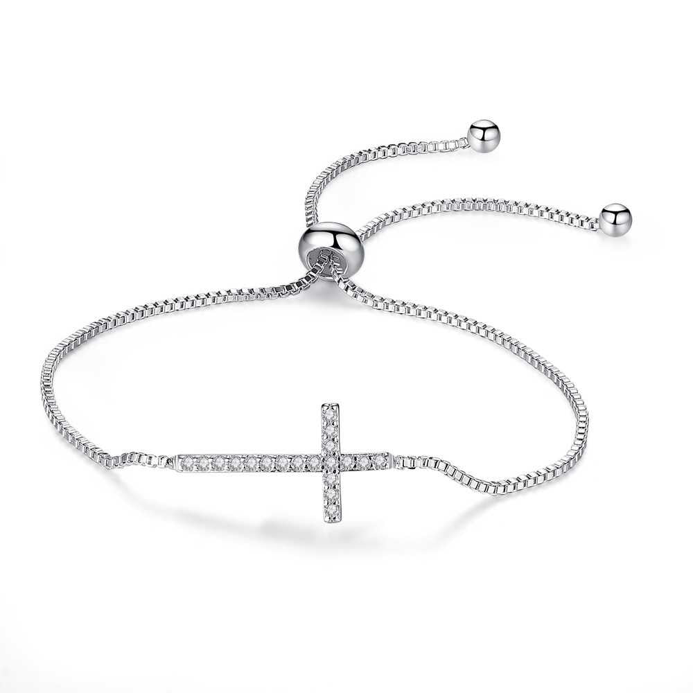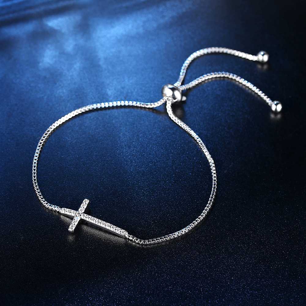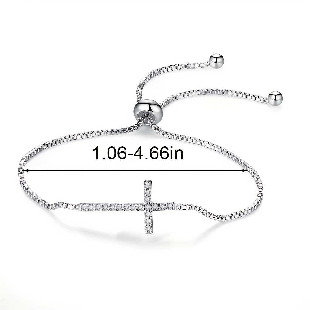 Adorn your wrist with timeless elegance and spiritual grace with our bracelet embellished delicately with shimmering cubic zirconia. Crafted for the modern woman who embraces both style and symbolism, this exquisite piece features a beautifully detailed cross symbol, encrusted with brilliant cubic zirconia stones that sparkle with every movement. Meticulously designed with adjustable sizing, this bracelet offers comfort and versatility, ensuring a perfect fit for any wrist. The lustrous silver tone complement any attire, whether worn alone as a statement piece or layered with other cherished accessories. Beyond its stunning aesthetic, this bracelet embodies deeper significance, symbolizing faith, hope, and love, making it an ideal gift for special occasions or a meaningful addition to your personal collection. Indulge in sophistication and spirituality with our bracelet, a timeless treasure that radiates grace and elegance in every moment.
