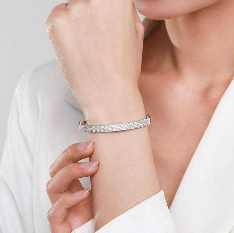 Bling Queen is an affordable fashion jewellery brand with various product types like bracelets, necklaces, earrings, rings, etc. suitable for women, men and kids. The bracelet features a classic bangle design, characterized by its circular shape and rigid structure. This design allows the bracelet to slip onto the wrist easily. Adorning the surface of the bangle are cubic zirconia stones, these stones are meticulously set into the metal of the bangle, creating a stunning display of sparkle and shine. The cubic zirconia stones may be arranged in a single row along the circumference of the bangle.