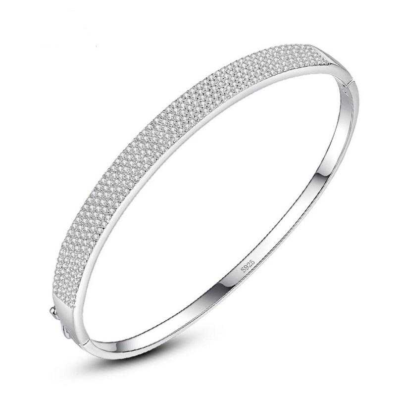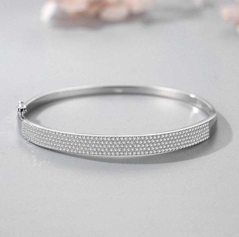 Women's Silver Plated Bangle Bracelet Studded With Cubic Zirconia