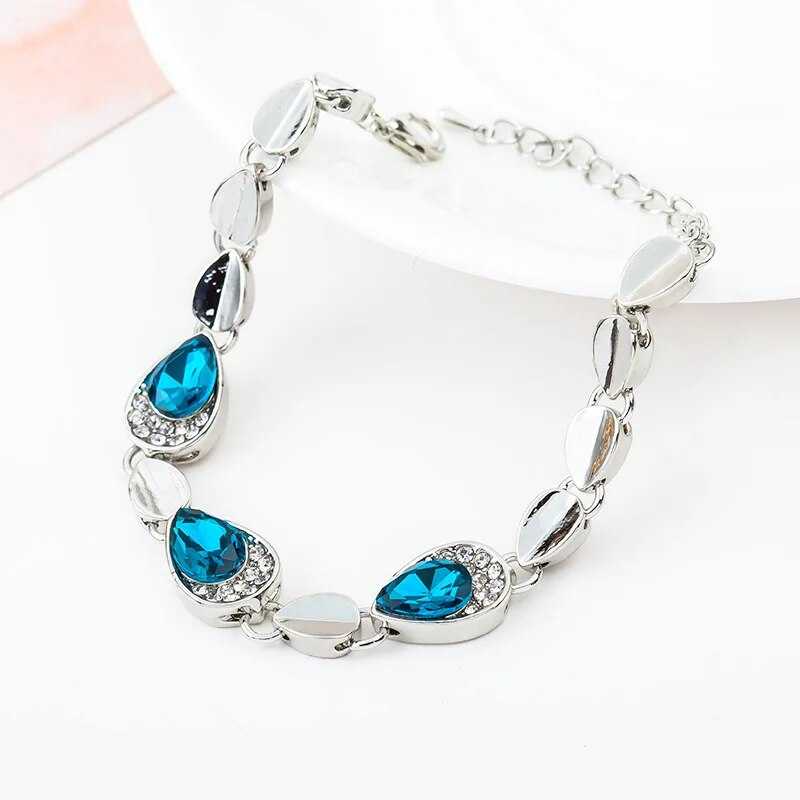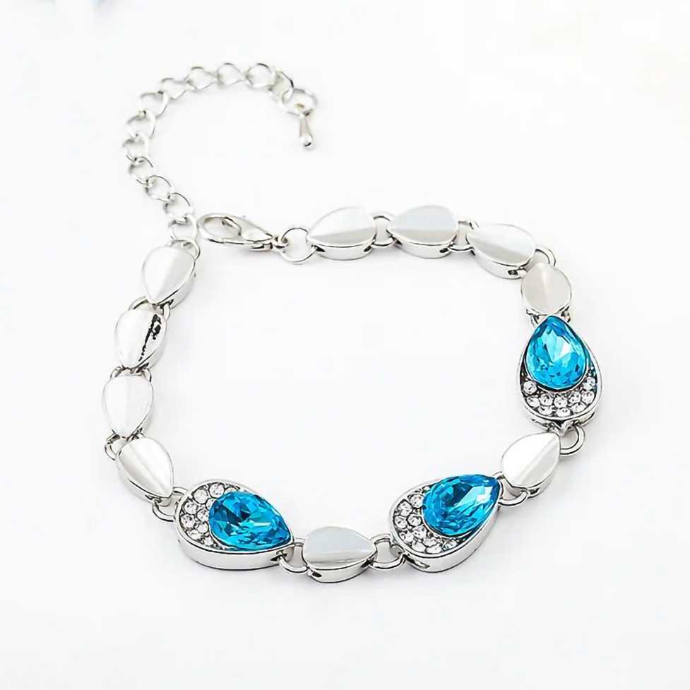 A blue diamond-shaped solitaire crystal is embellished in the center of the bracelet. Clear stones are decked around the bluestone to complete the royal look of the bracelet. You can pair this bracelet with many other pieces of jewelry from the bluestone collection. A perfect gift for bracelet lovers. The bracelet boasts a silver-plated chain that exudes a timeless and sophisticated charm. The silver finish adds a touch of luster and versatility, making it an ideal accessory for various occasions. Featuring a secure lobster claw closure, this bracelet ensures a snug fit while offering ease of wear and removal. The closure adds a touch of modernity to the design while providing peace of mind that your bracelet stays in place. Adorned with an assortment of charms, each with its own unique design, the bracelet allows you to express your individual style. From hearts and stars to intricate symbols, the charms create a delightful and personalized aesthetic. e bracelet includes an adjustable chain length, allowing you to customize the fit according to your wrist size and comfort preferences. This feature ensures that the bracelet is suitable for a range of wrist sizes. The bracelet strikes a balance between sophistication and playfulness, making it a perfect accessory to complement your everyday look or add a touch of charm to your evening attire. Presented in an elegant box, this bracelet makes for a thoughtful and stylish gift for birthdays, anniversaries, or any special occasion.
