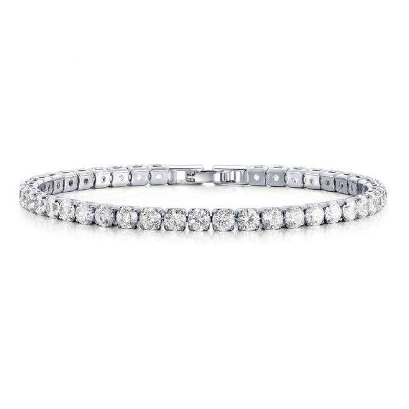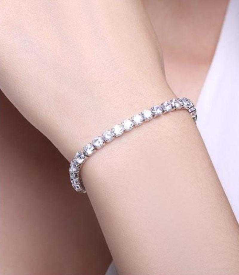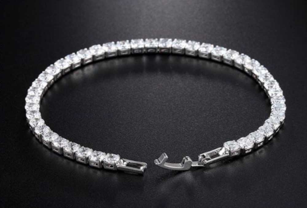Indulge in timeless sophistication with our bracelet adorned with radiant cubic zirconia. Crafted with high quality silver plating, this bracelet features a series of meticulously placed sparkling cubic zirconia stones along its length. Each stone is precisely set to create a continuous line of brilliance, reminiscent of a traditional tennis bracelet design. It is is a timeless and elegant piece that exudes sophistication. The lustrous silver plating beautifully complements the dazzling cubic zirconia, elevating any outfit with its subtle yet luxurious shine. The secure clasp ensures a comfortable fit while keeping the bracelet securely in place. This classic tennis bracelet is versatile, making it an ideal accessory for both formal occasions and everyday wear. Its timeless design and shimmering stones make it a perfect gift choice to celebrate special moments or to add a touch of elegance to any jewellery collection.