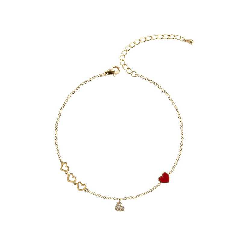 This bracelet features a trio of hearts and an enamelled heart linked together by a link chain. It also features a dainty sparkling cubic zirconia heart that hangs beautifully in between the trio heart motif and enamelled heart on the link chain. This garland of hearts is sure to impress her. An ideal gift for her.
