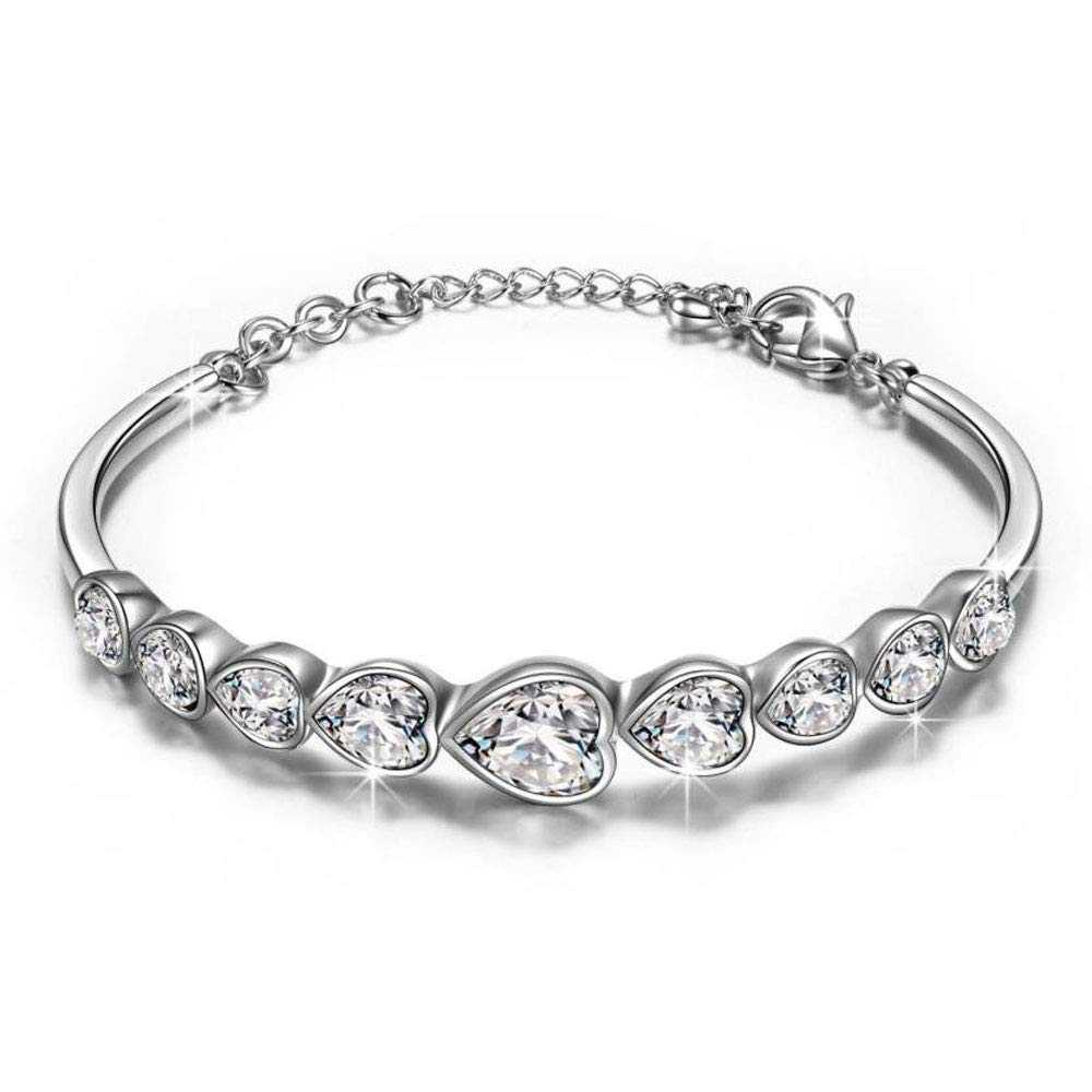 Women's Silver Plated Heart Bracelet With Lobster Claw Closure