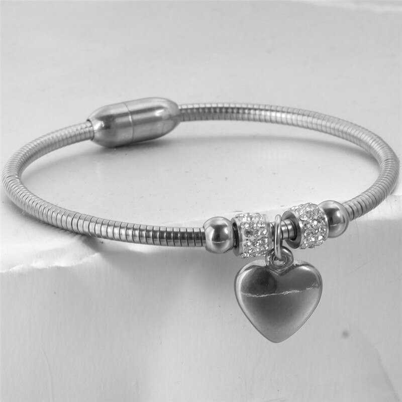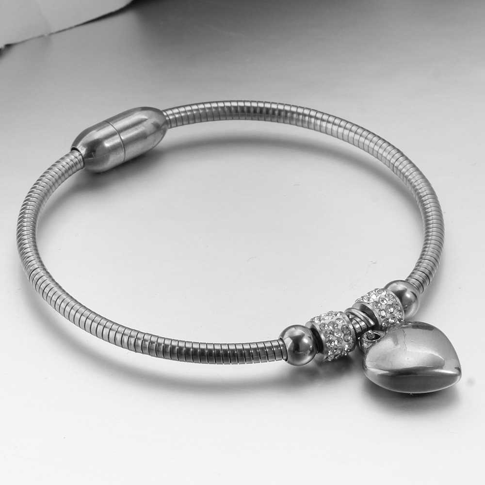 Bling Queen is an affordable fashion jewellery brand with various product types like bracelets, necklaces, earrings, rings, etc. suitable for women, men and kids. The focal point of the bracelet is a heart shaped drop pendant, which hangs delicately from the bracelet chain. This enchanting design showcases cylindrical beads studded with crystals that enhance shine and sparkle. These beads bracelet has a heart pendant in between that adds an expression of love to this bracelet. The crystal stones are securely set into a metal framework. It has a magnetic clasp to hold it together on a snake chain.