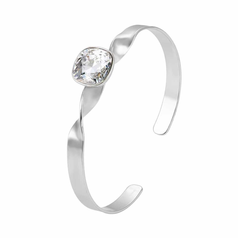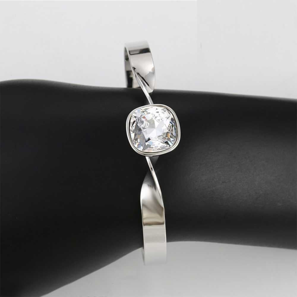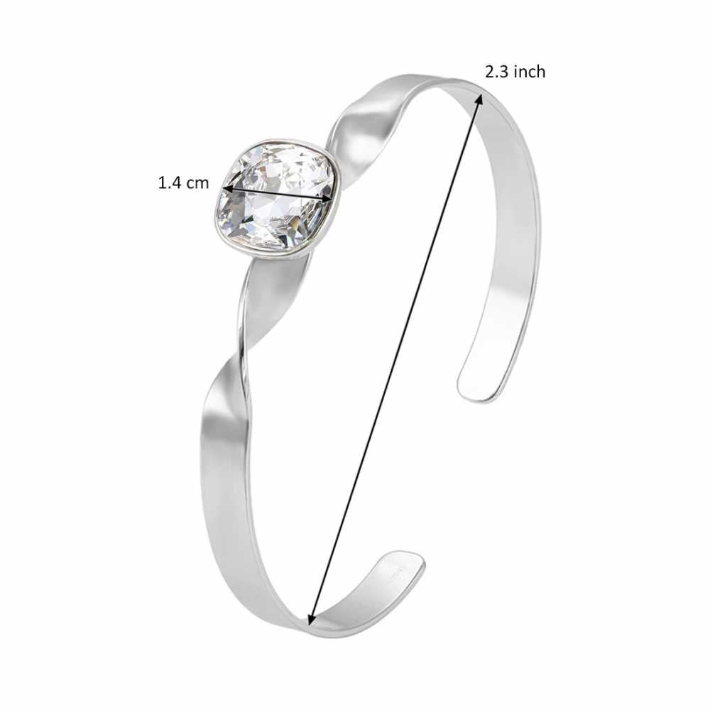 Women's Square Solitaire Crystal Cuff Bracelet In White Metal