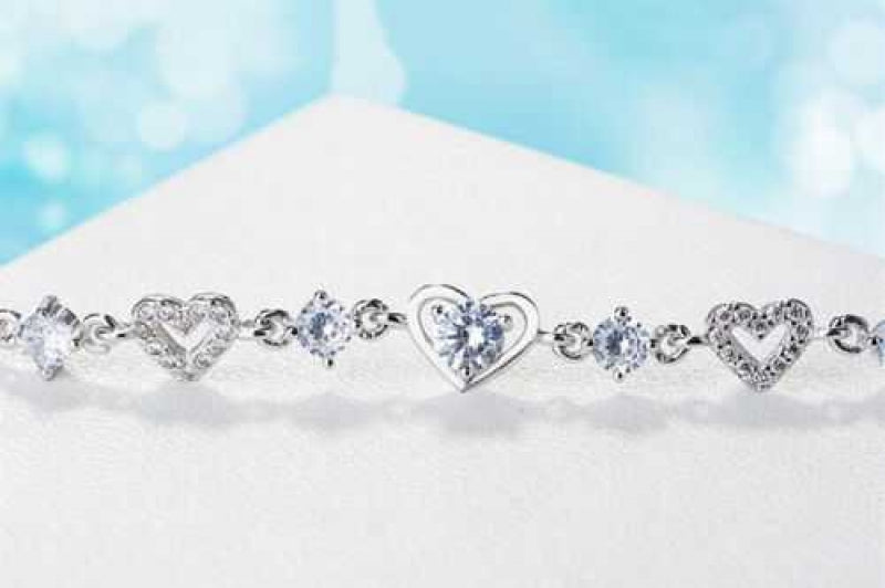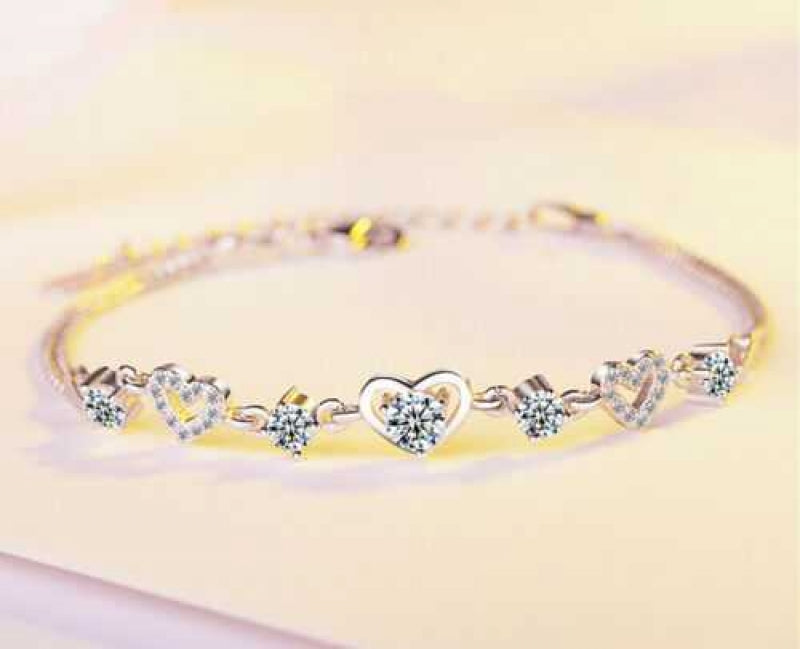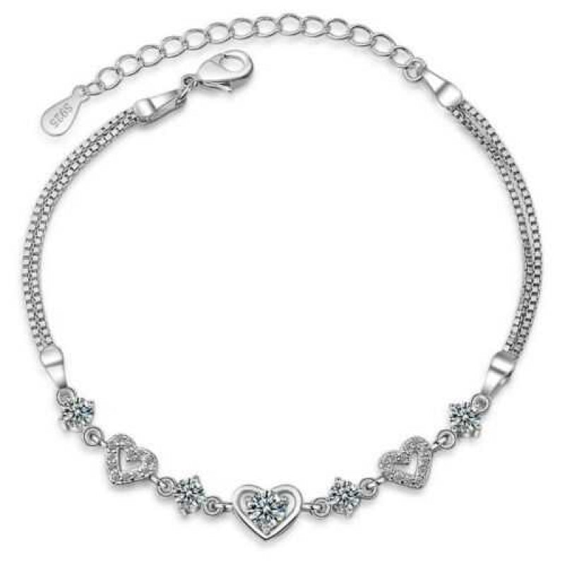 Bling Queen is an affordable fashion jewellery brand with various product types like bracelets, necklaces, earrings, rings, etc. suitable for women, men and kids. This bracelet features intricately crafted silver plated hearts adorned with shimmering zirconia stones. The bracelet is constructed with a series of connected hearts, each delicately linked together to form a continuous chain. Each heart is meticulously crafted to showcase intricate detailing and a brilliant shine, thanks to the silver plating that enhances its luster. The focal point of this bracelet is the zirconia stones embedded within each heart. The stones are carefully set within the hearts, ensuring they catch the light from every angle, creating a mesmerizing play of reflections. The closure features a small lever that opens and closes the clasp, allowing for easy attachment and removal while ensuring the bracelet stays securely in place throughout the day. Whether worn casually or for a special occasion, it adds a touch of sparkle and sophistication to any ensemble, making it a versatile and beloved addition to any jewelry collection.