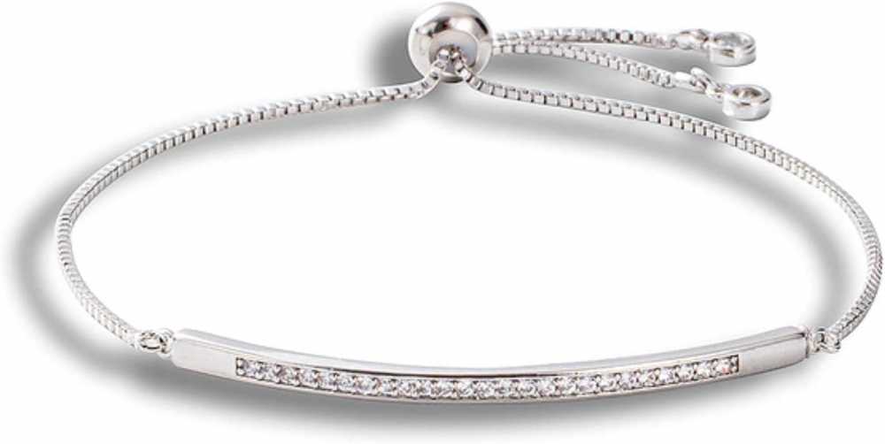 Women's Zirconia Embossed Adjustable Bracelet With Slider Clasp