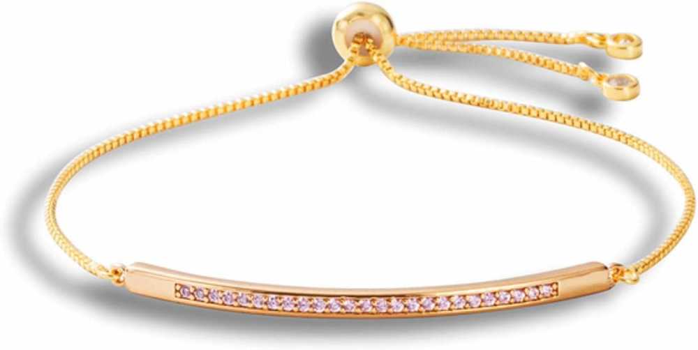 Bling Queen is an affordable fashion jewellery brand with various product types like bracelets, necklaces, earrings, rings, etc. suitable for women, men and kids. The bracelet features a sleek and modern design, with a slim band that wraps around the wrist comfortably. The surface of the bracelet is embossed with intricate patterns or designs, adding texture and visual interest to the piece. The zirconia stones are carefully set within the metal, creating a stunning contrast against the polished surface of the bracelet. The adjustable slider clasp closure allows for easy customization of the bracelet's fit, ensuring a secure and comfortable wear for any wrist size. The slider clasp closure also adds a contemporary touch to the design, making it both functional and fashionable. It can be worn alone as a statement piece or layered with other bracelets for a more personalized look. The timeless elegance of the design makes it suitable for women of all ages and style preferences.