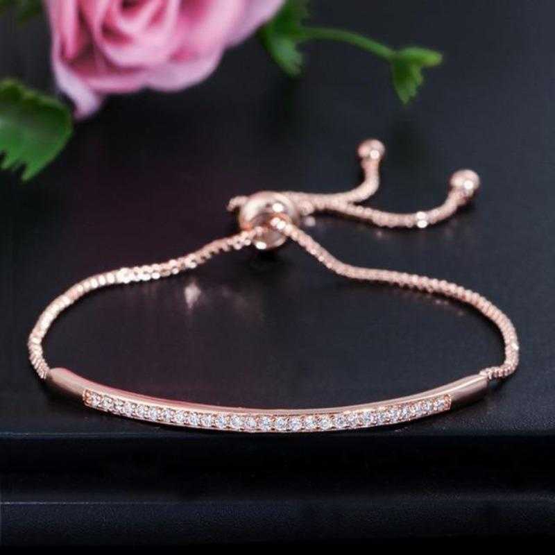 • Product Particulars: The bracelet is made of high quality alloy metal, zirconia stones are embedded into the metal. The closure type of the bracelet is a slider clasp closure.