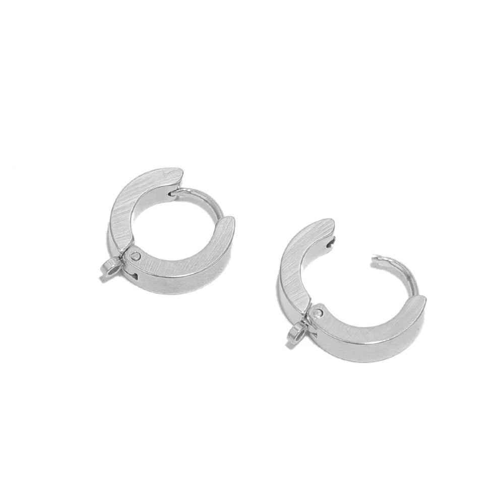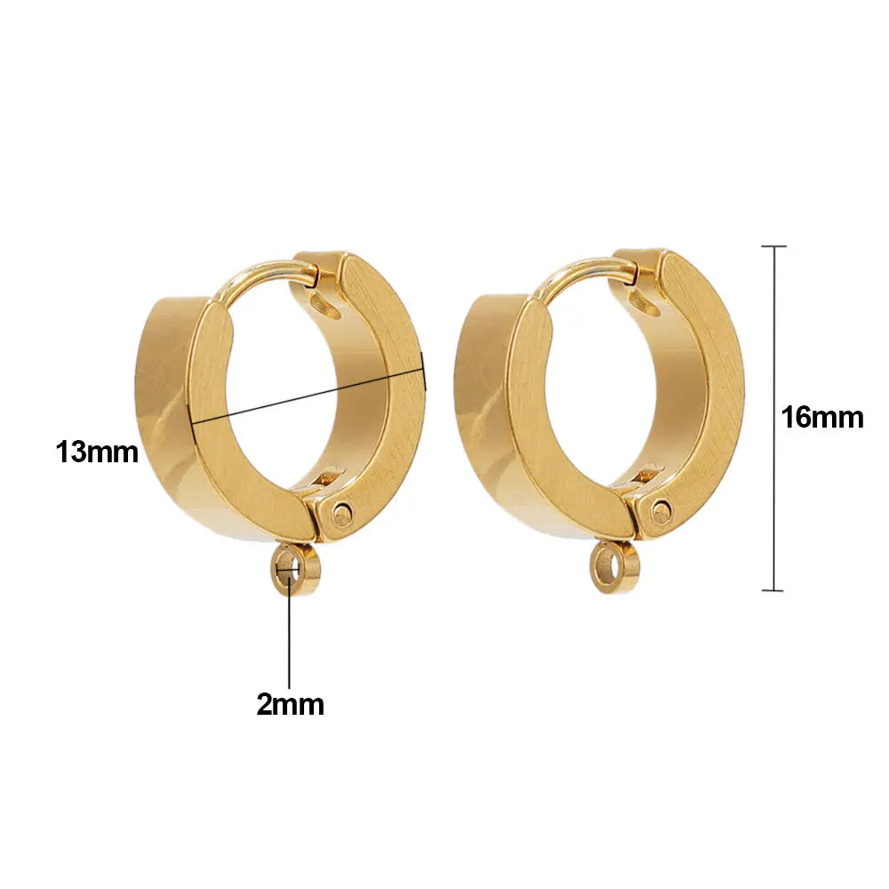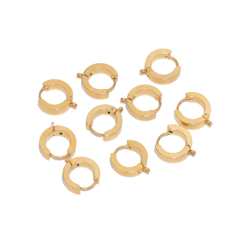 10Pcs stainless steel flat ear stud hooks with loop round ear post with ring, ideal for making DIY punk and hiphop earrings.