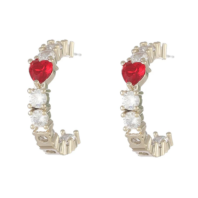 - 14k real plated love diamond zirconium earrings