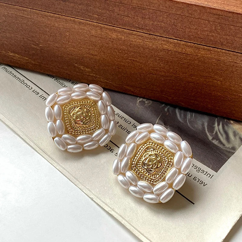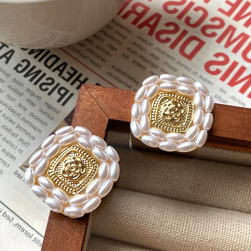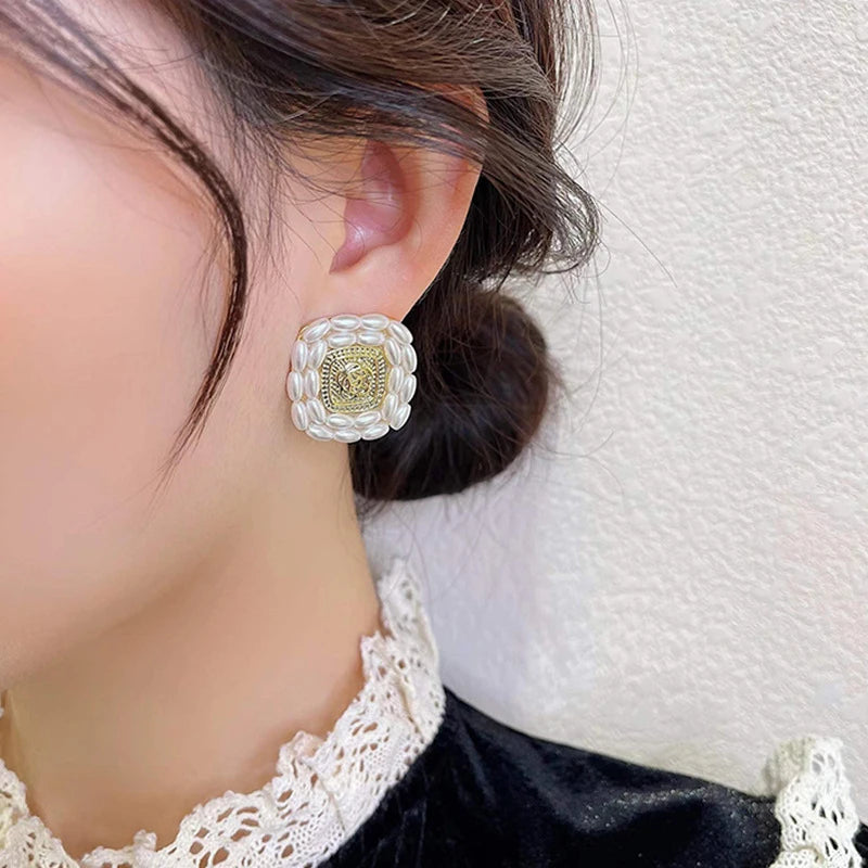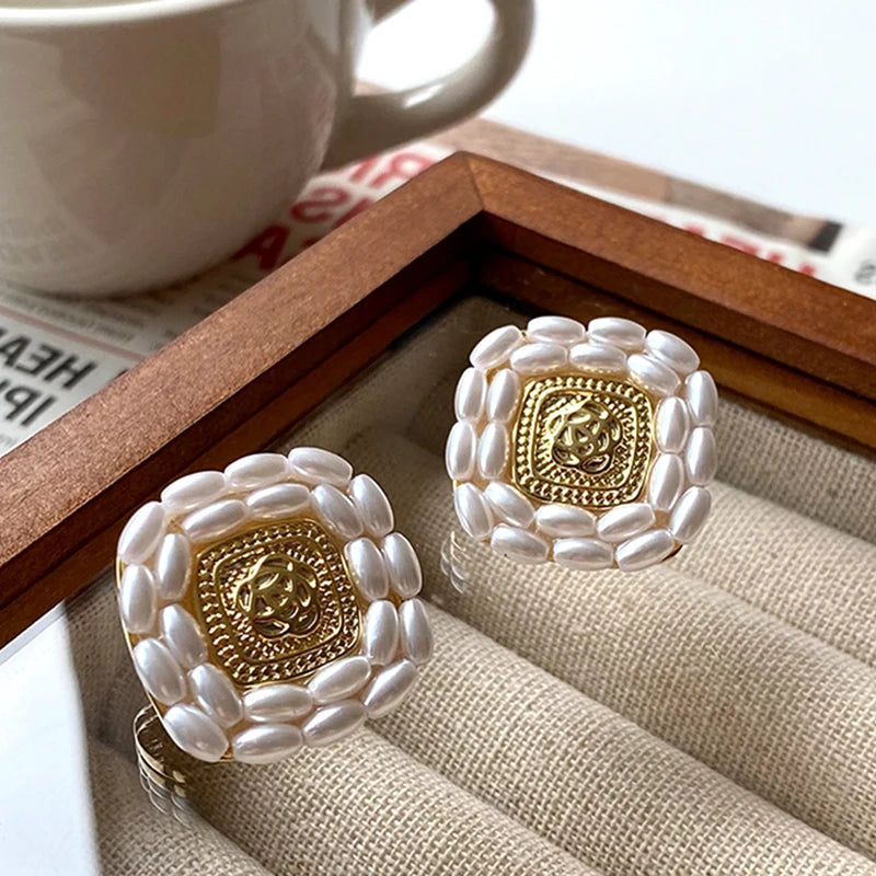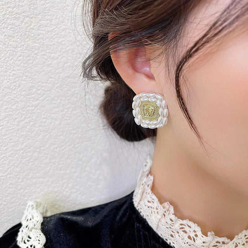 These elegant flower pearl square earrings are perfect for weddings, birthdays, and parties. Made with S925 needle studs and 14K plating.