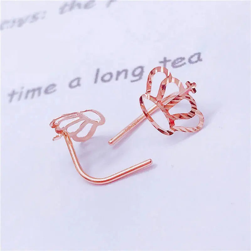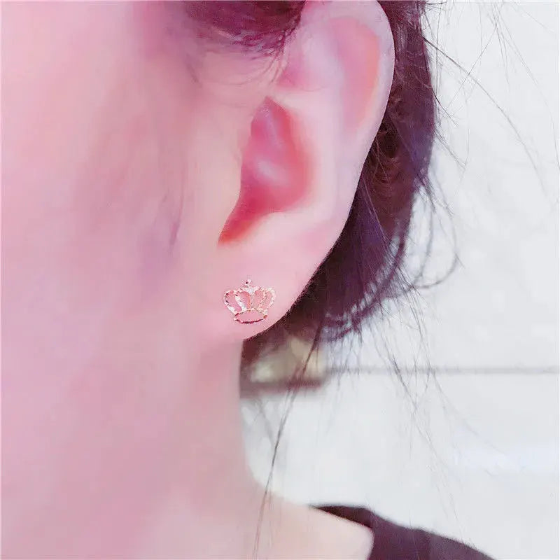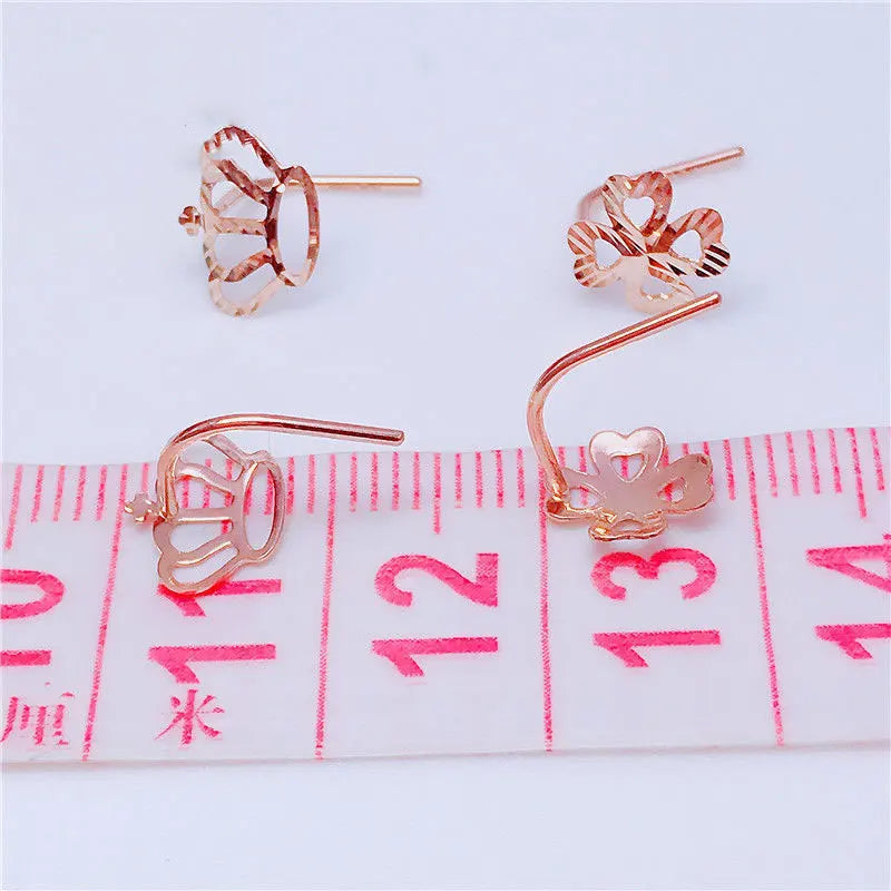 14K Rose Princess Crown Earrings for Women, Sweet Party Jewelry