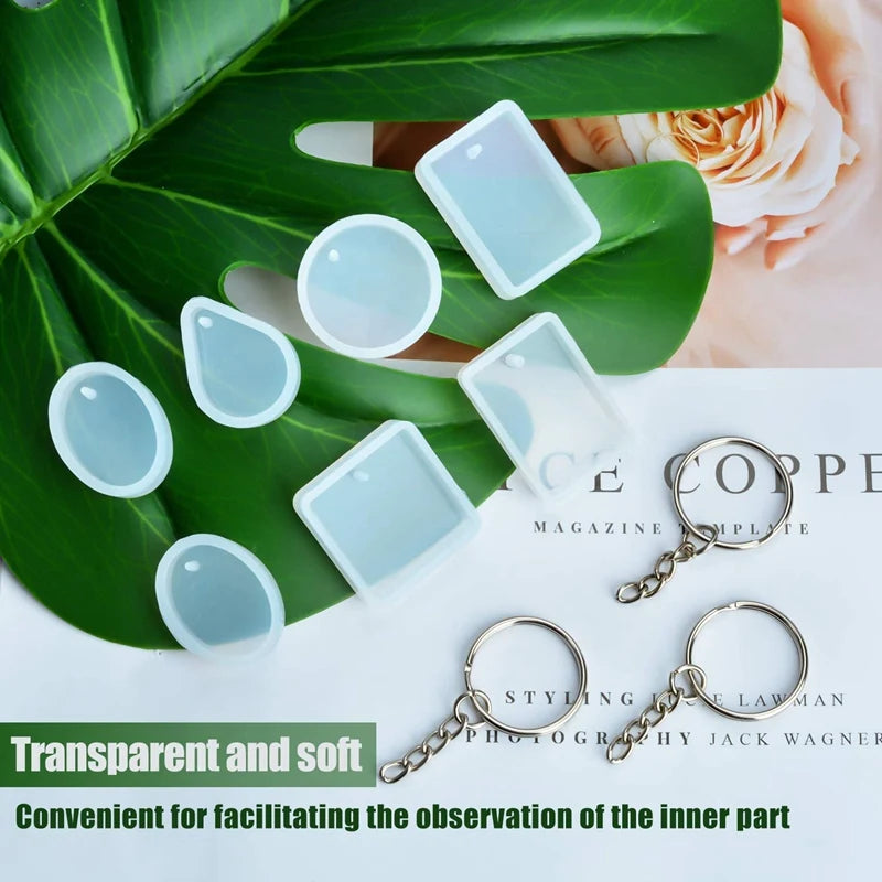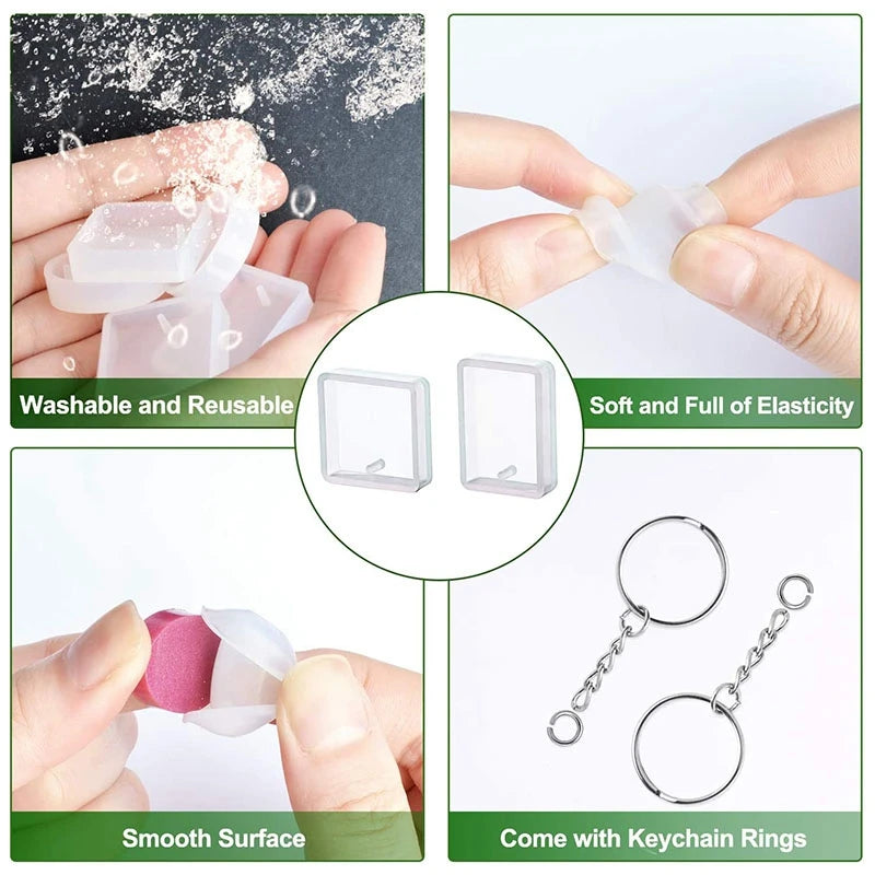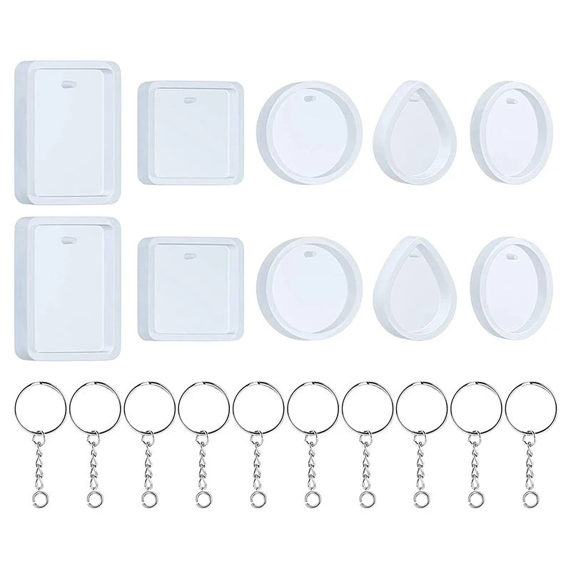 Create your own unique jewelry with this set of 20 silicone resin earring casting molds. Perfect for DIY jewelry making, these molds come with keychain rings for added versatility.