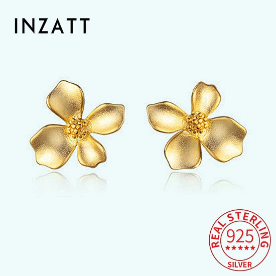 925 Silver 18K Flower Plant Stud Earrings For Women, Minimalist Jewelry