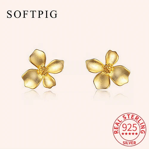 Add a touch of charm with these minimalist flower stud earrings. Made of real 925 sterling silver with 18K gold plating, these earrings are perfect for everyday wear or special occasions.