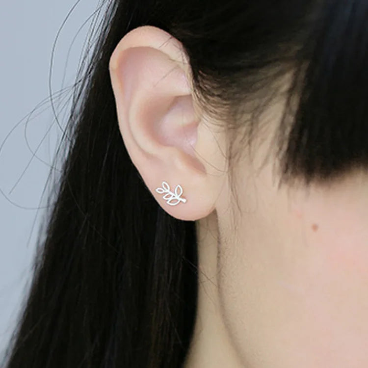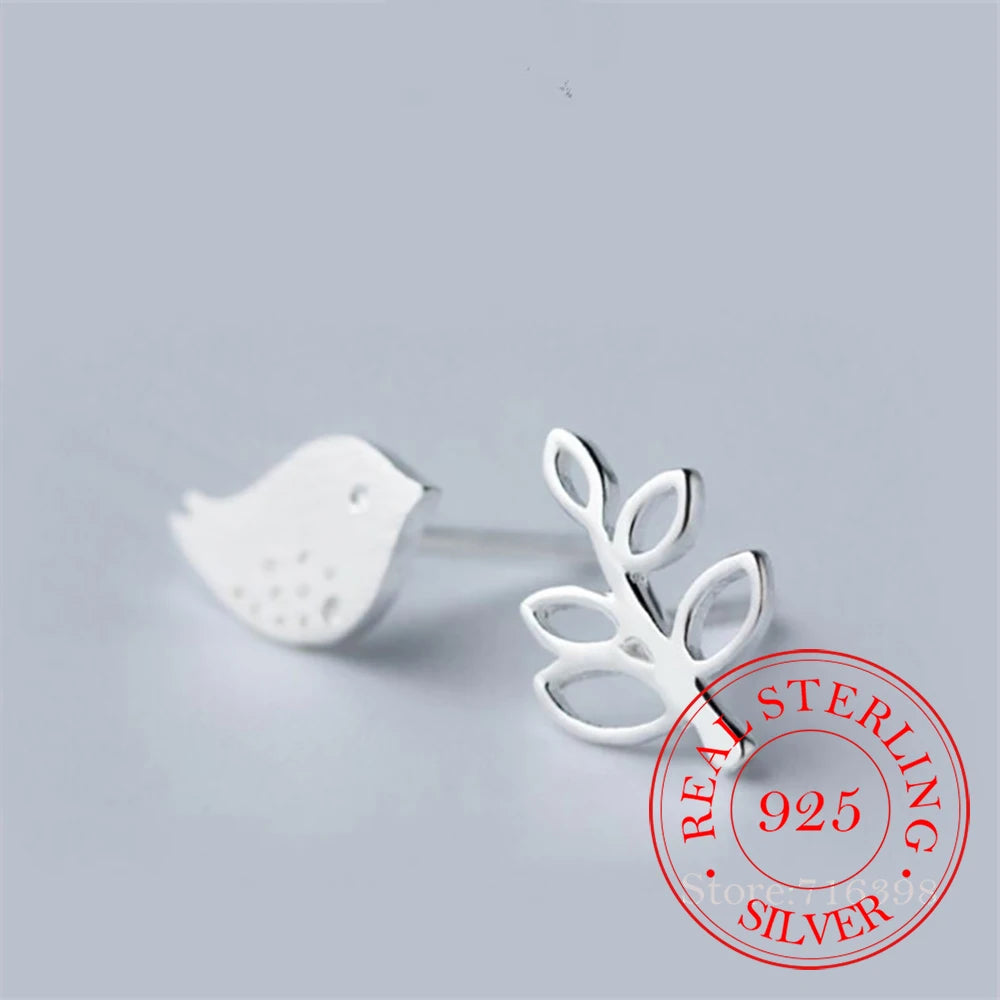 925 Silver Bird Leaf Stud Earrings Women Jewelry pendientes