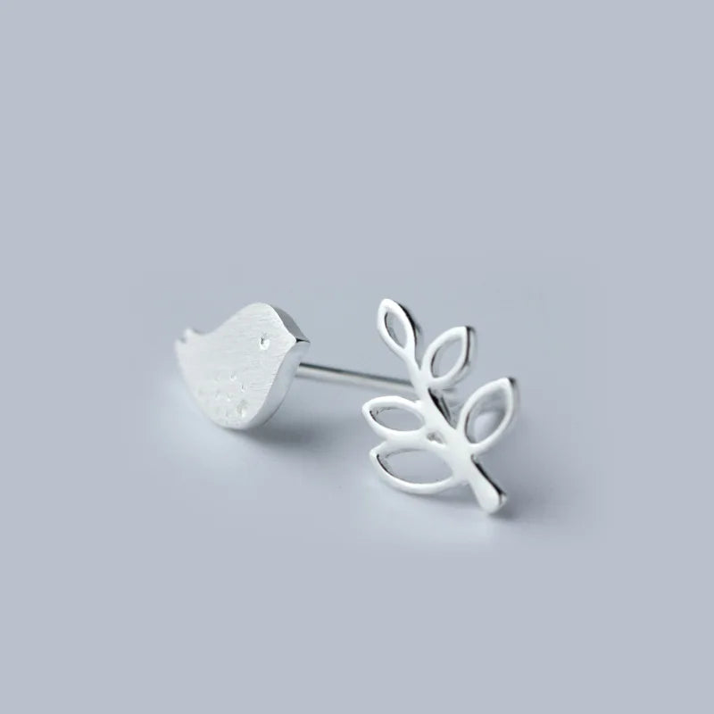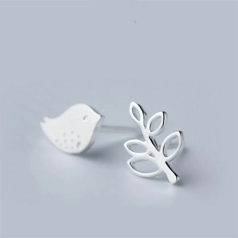 These adorable stud earrings feature a delicate bird and leaf design. Made from 100% 925 sterling silver, they are perfect for everyday wear or special occasions.
