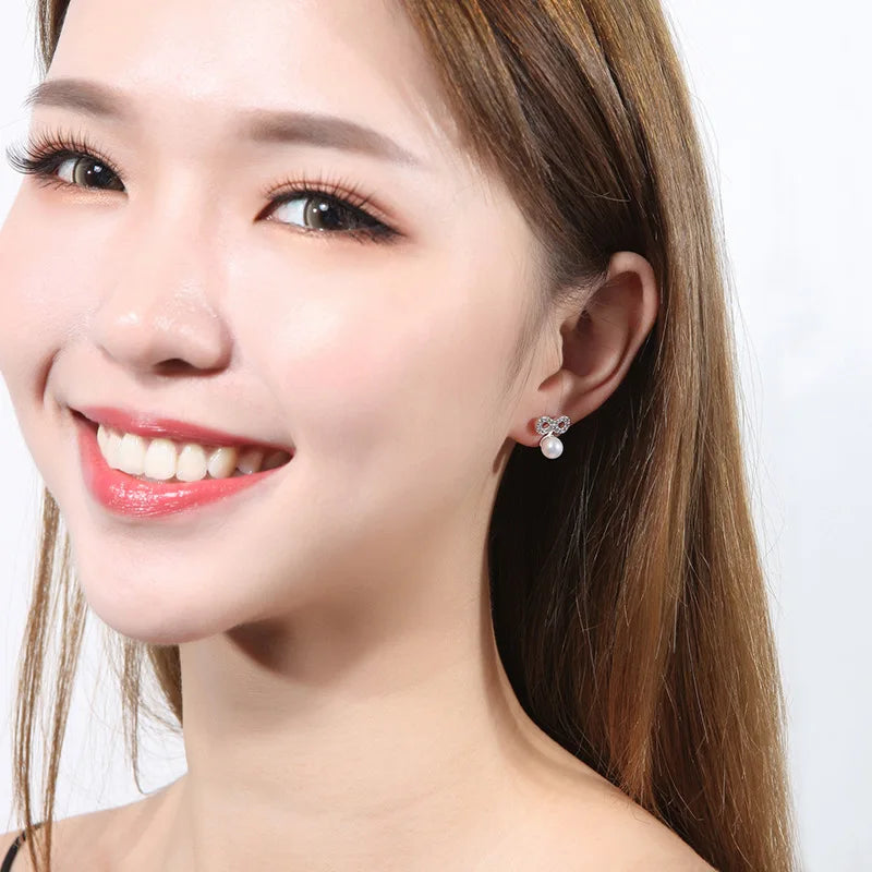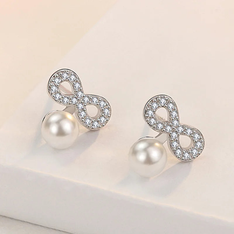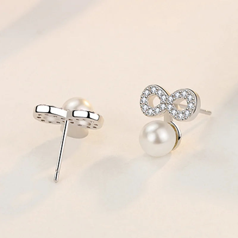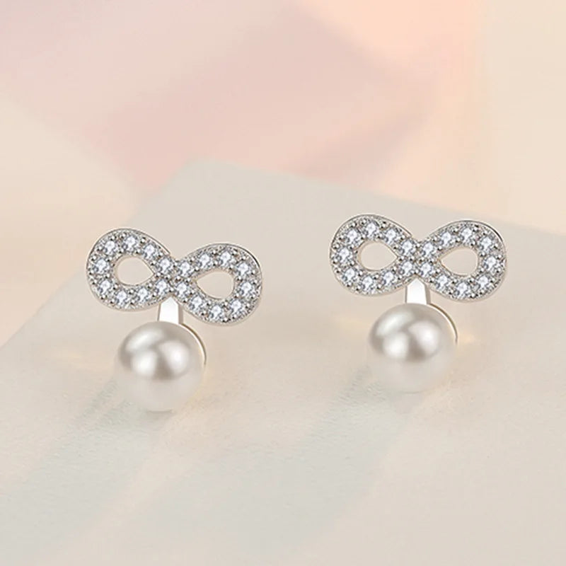 These elegant earrings feature a timeless design with a bowknot, infinity symbol, and lustrous pearls. Made of high-quality 925 silver with zircon accents, they make a perfect gift for any occasion.