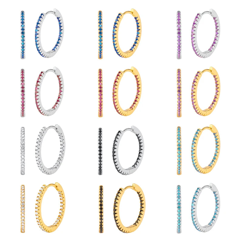 925 Silver Buckle Hoop Earrings 10mm 13mm Crystal Pave Minimalist Huggie Gift