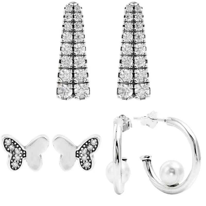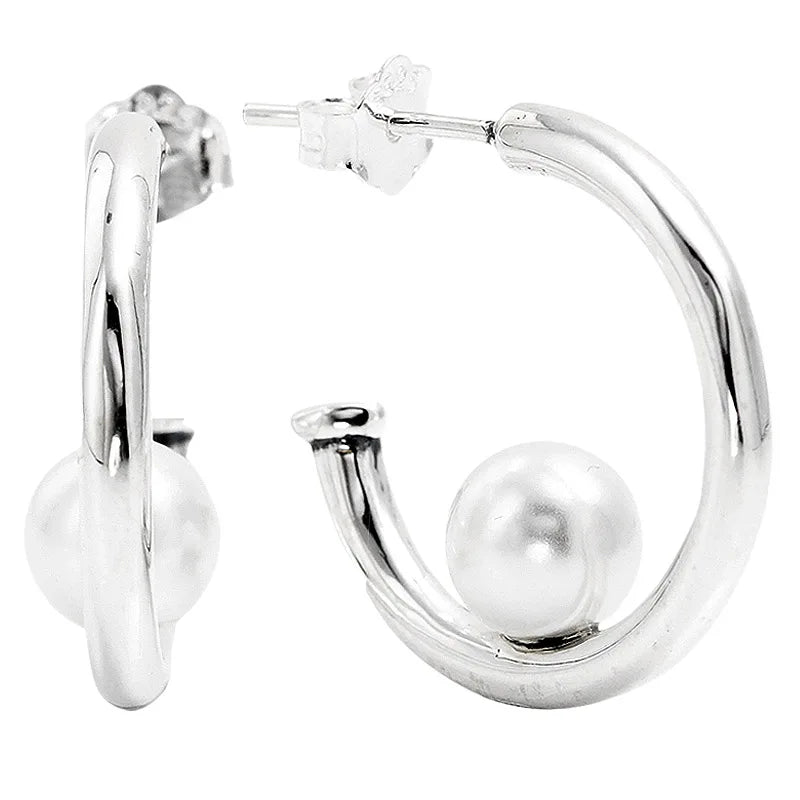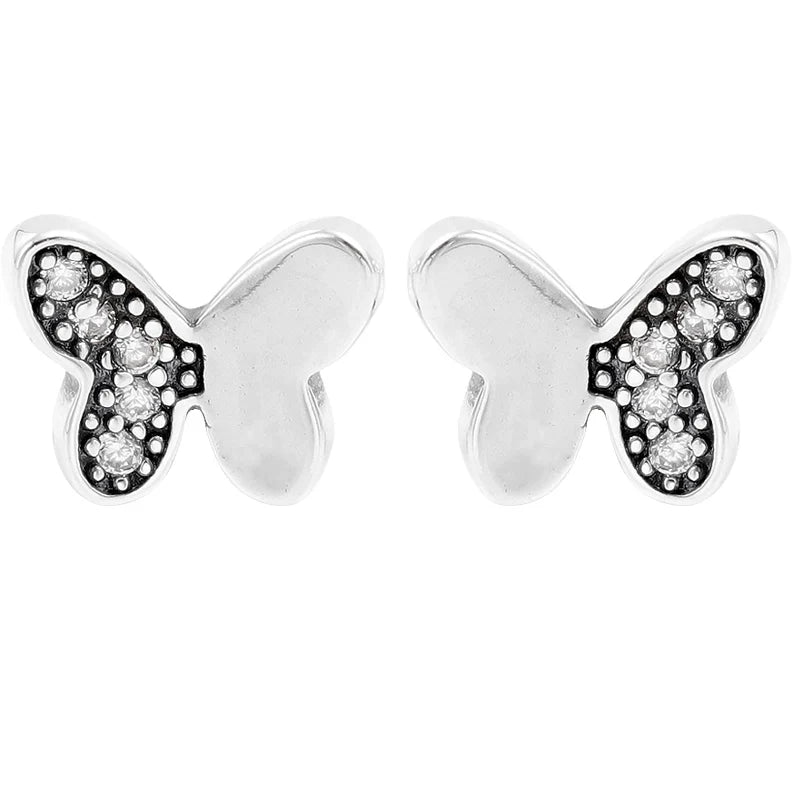 925 Silver Butterfly Hoop Earring w/ Crystal & Pearl