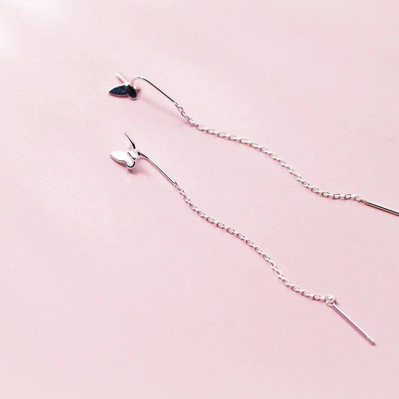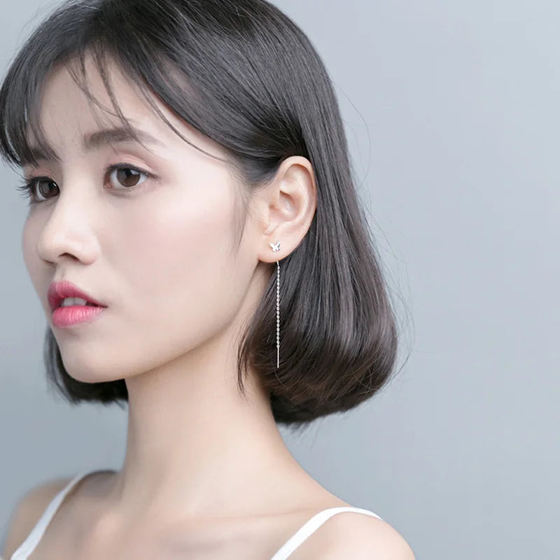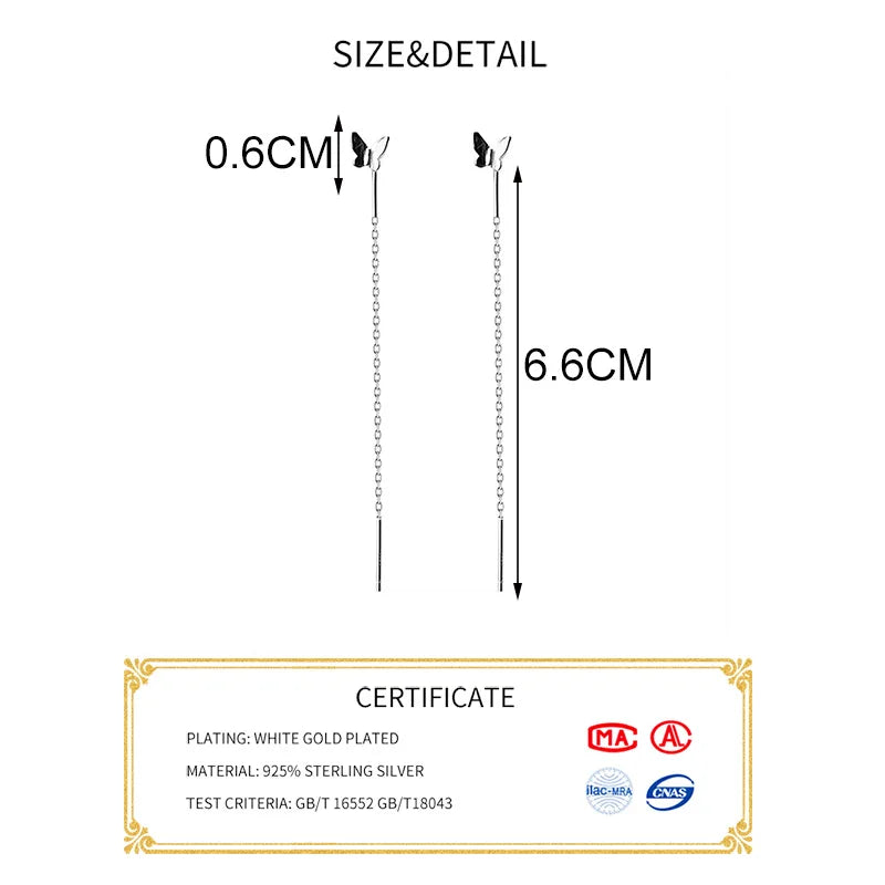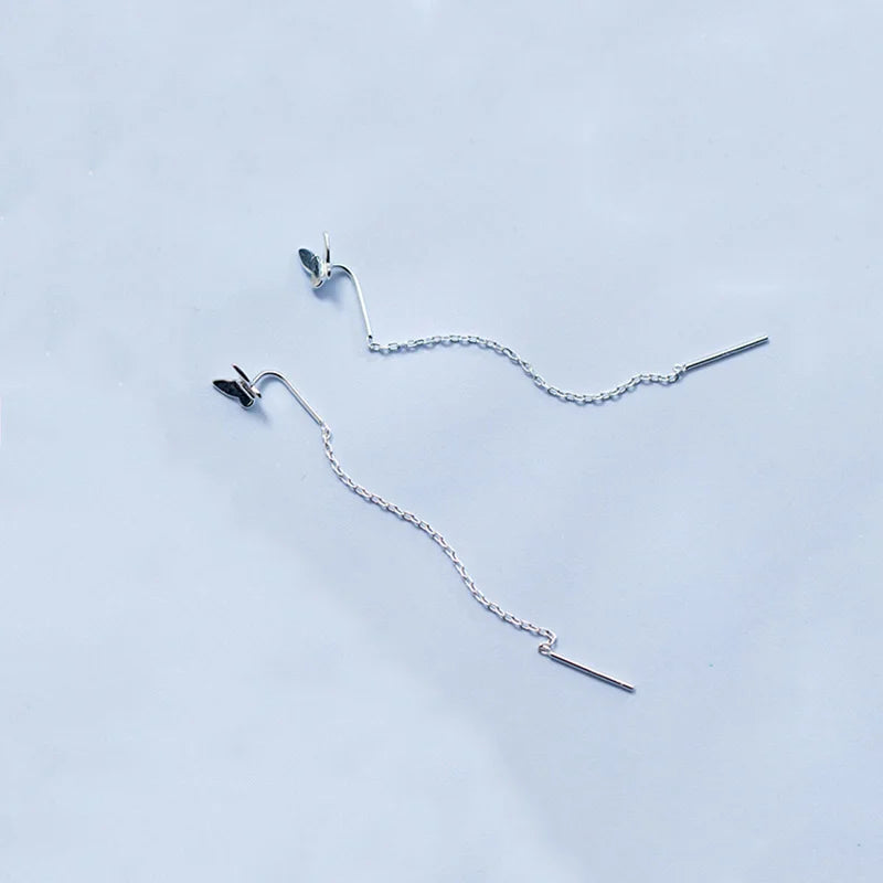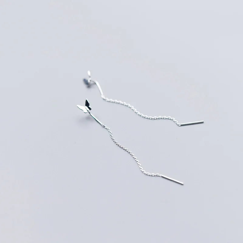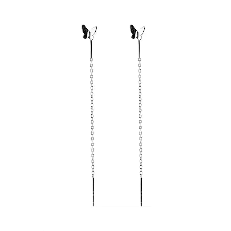 925 Silver Butterfly Tassel Drop Earrings for Women Party