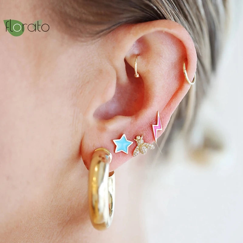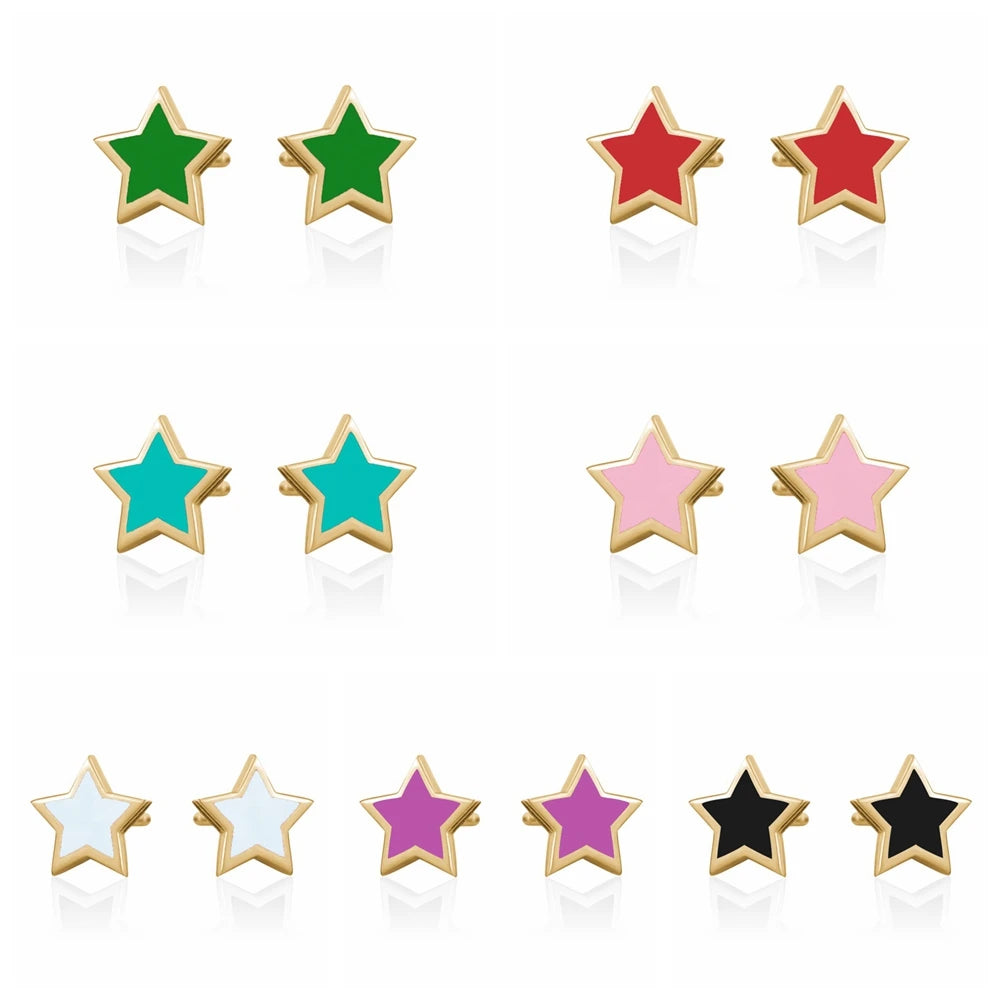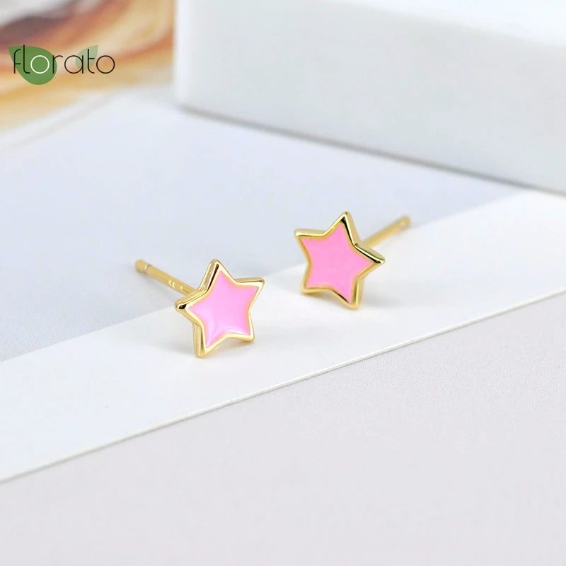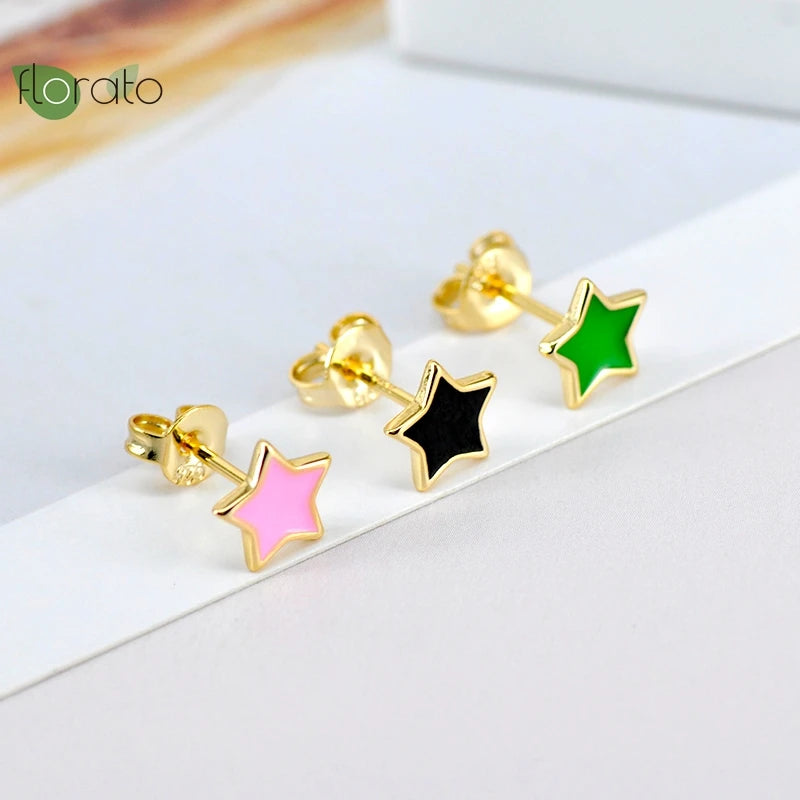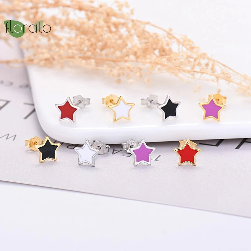 925 Silver Candy Star Enamel Earrings Women Jewelry Studs