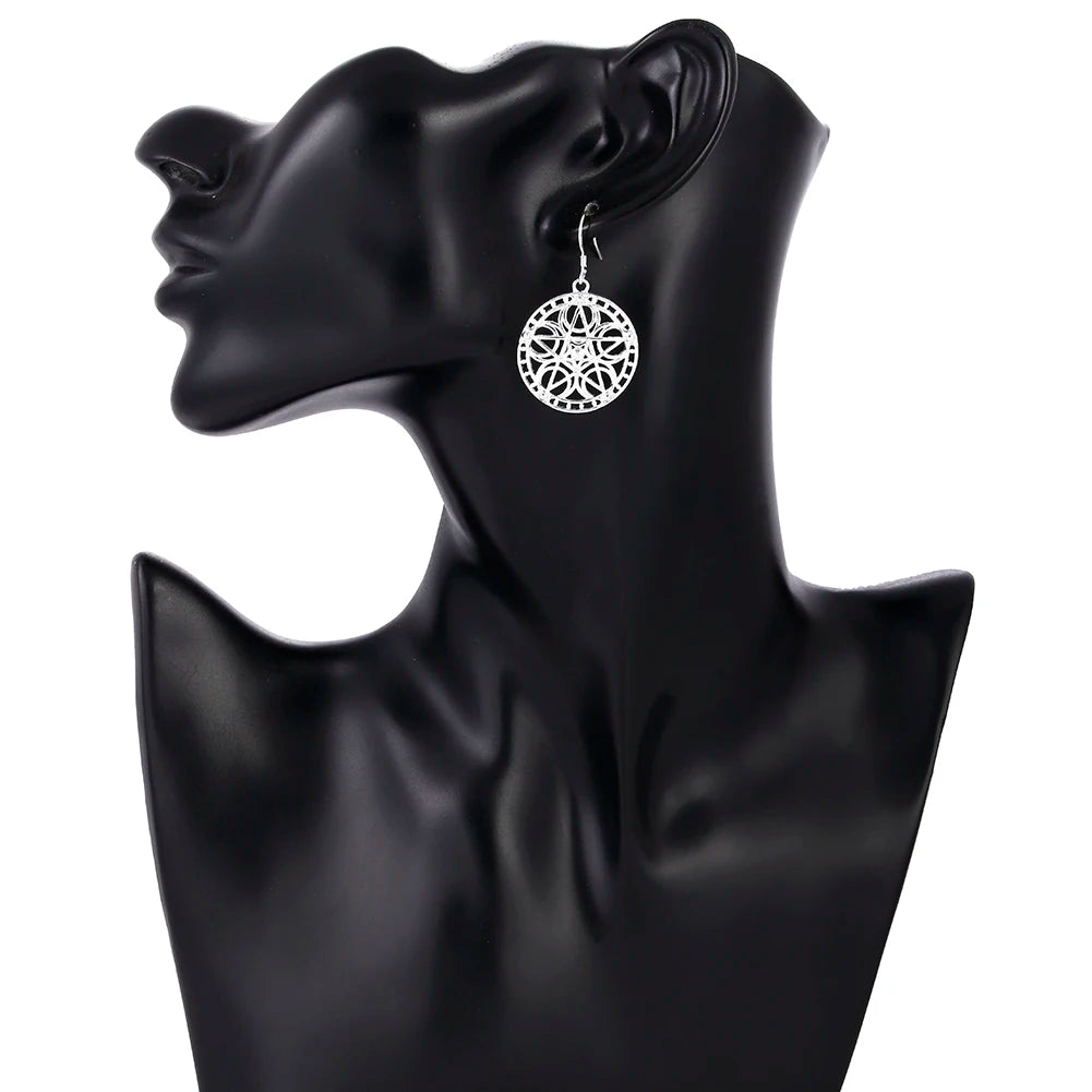 925 Silver Carved Star Earrings High Jewelry