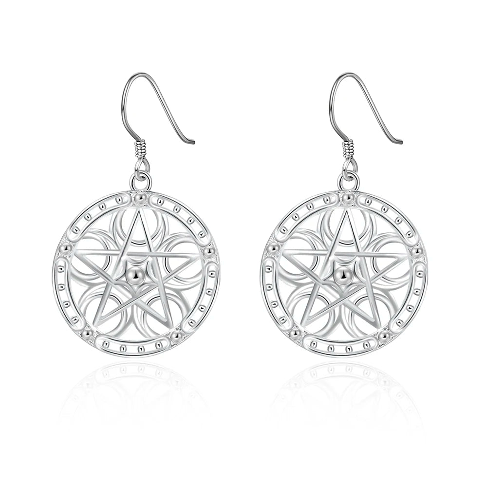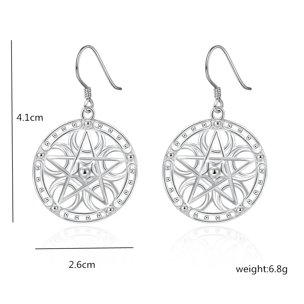 These stunning 925 sterling silver earrings feature a carved five-pointed star design that adds a touch of glamour to any party outfit.