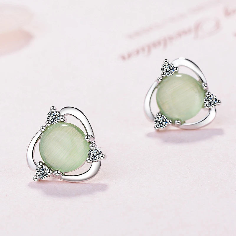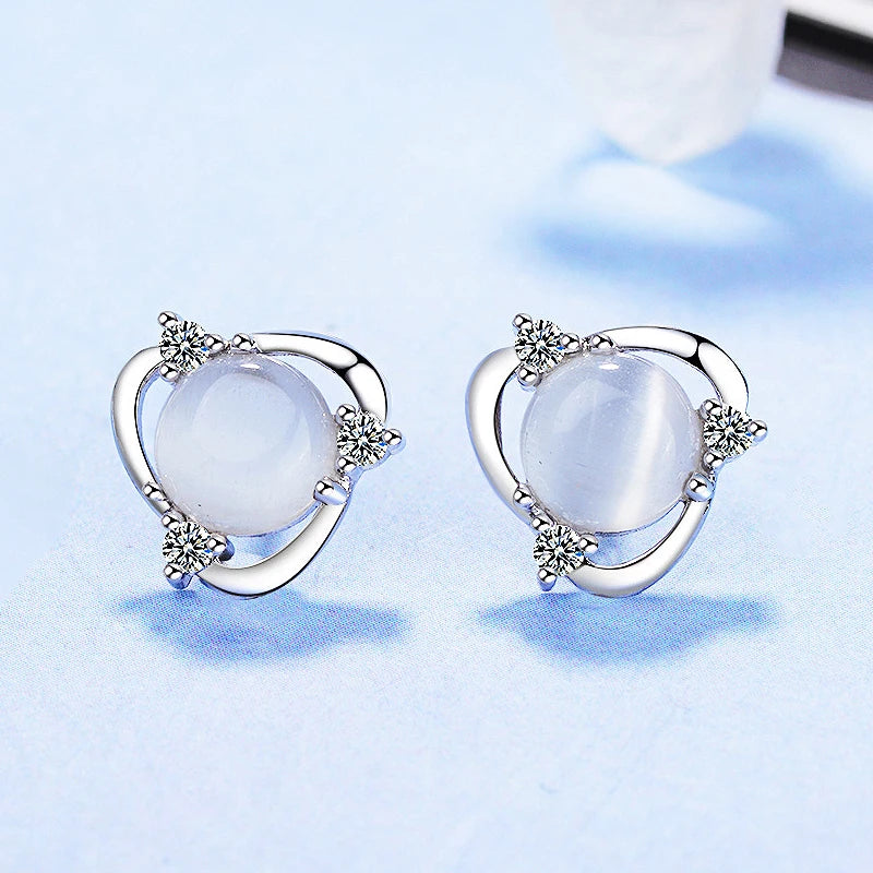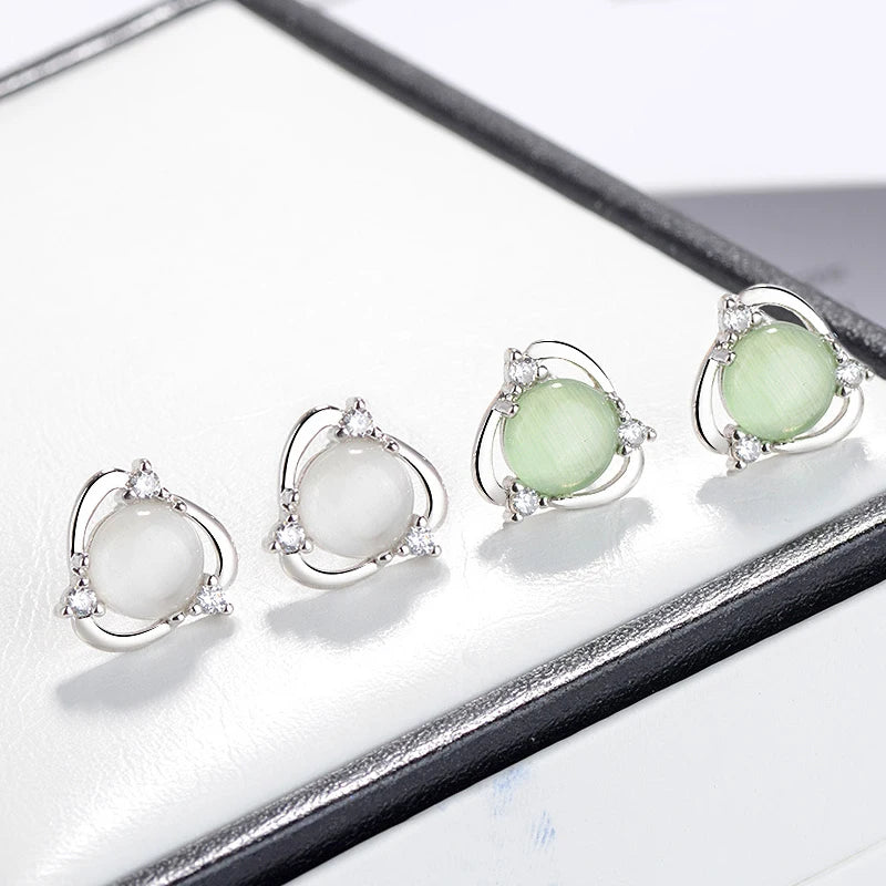 These earrings are made of 925 silver and feature cat eye stone and zircon studs. Perfect for weddings, promises, and parties. An ideal gift for women.