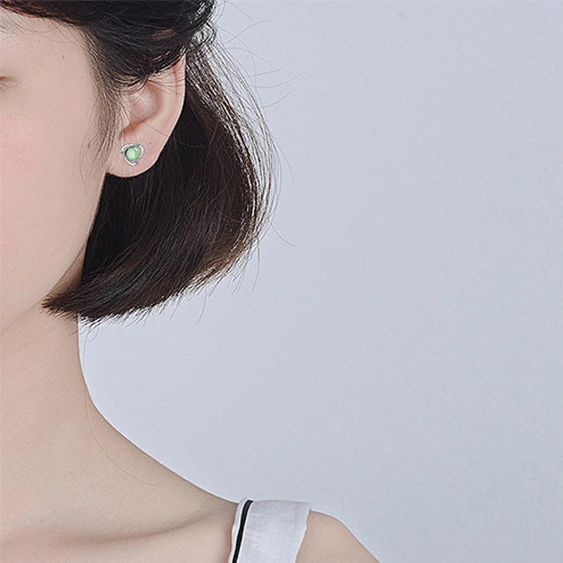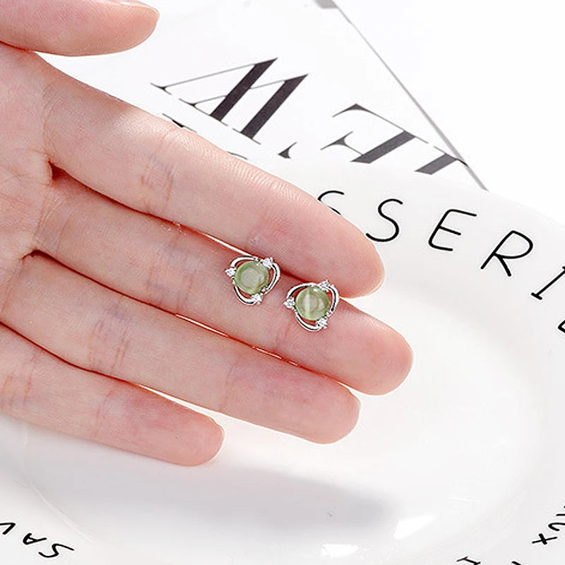 925 Silver Cat Eye Stone Zircon Stud Earrings Wedding Party Gift
