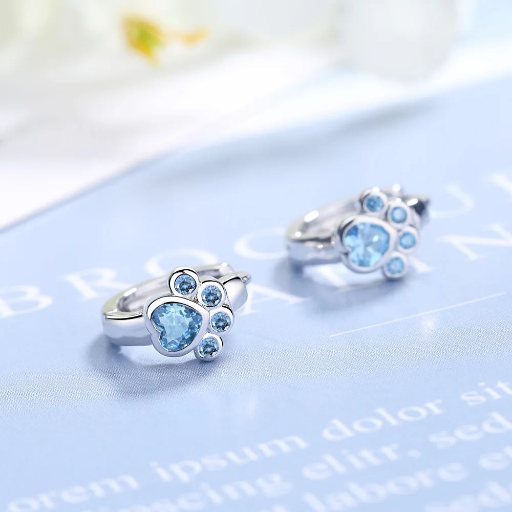 Accessorize with these adorable cat paw huggie hoop earrings featuring CZ stones. Made of 925 sterling silver, these earrings are perfect for any cat lover.