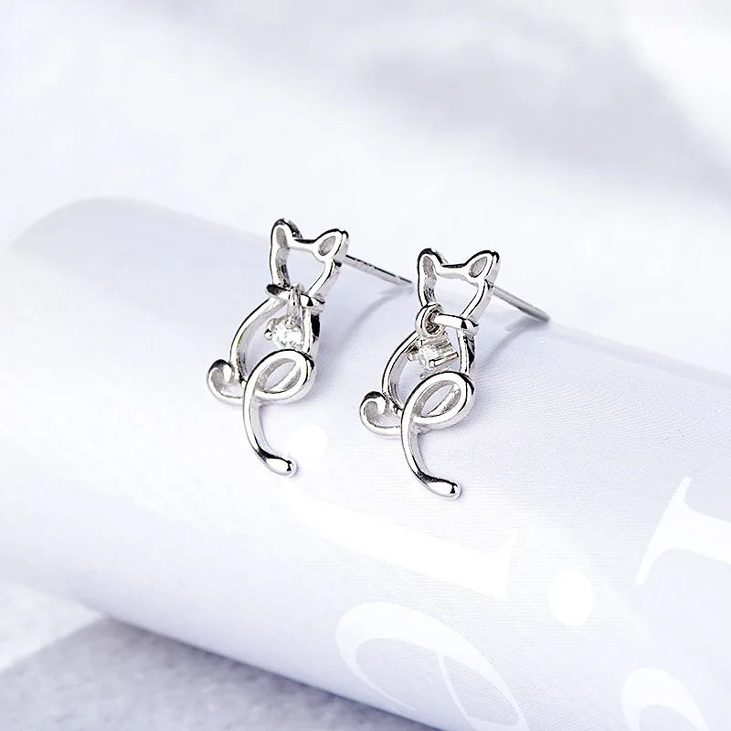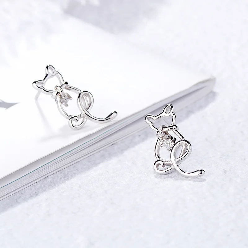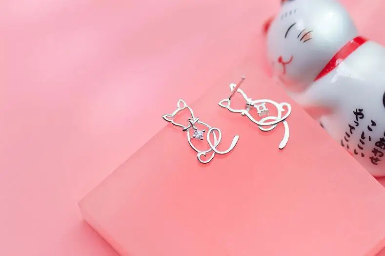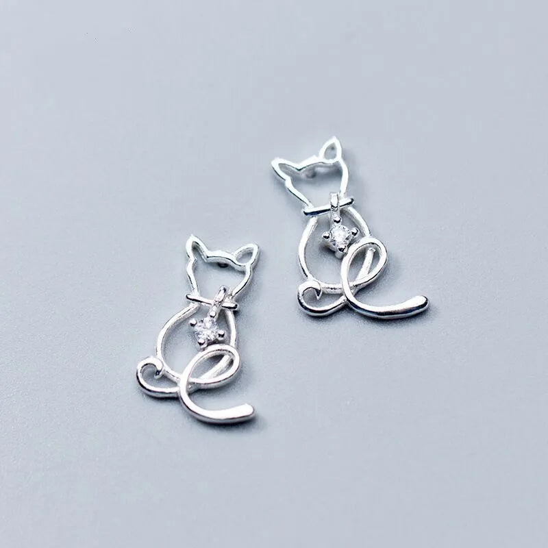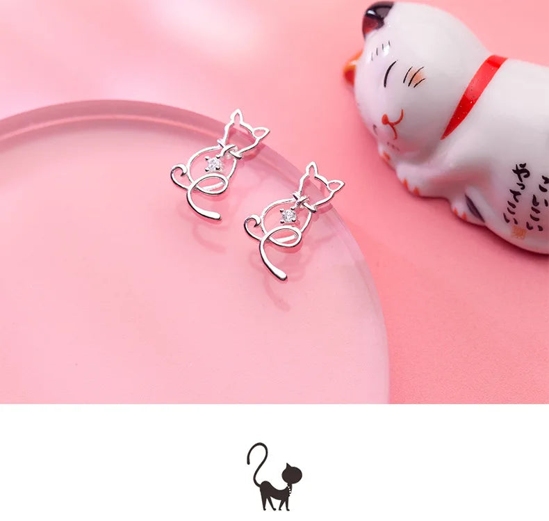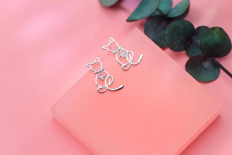 These adorable cat stud earrings are made of 925 sterling silver and feature sparkling crystals. Perfect for women, kids, and as a wedding gift.