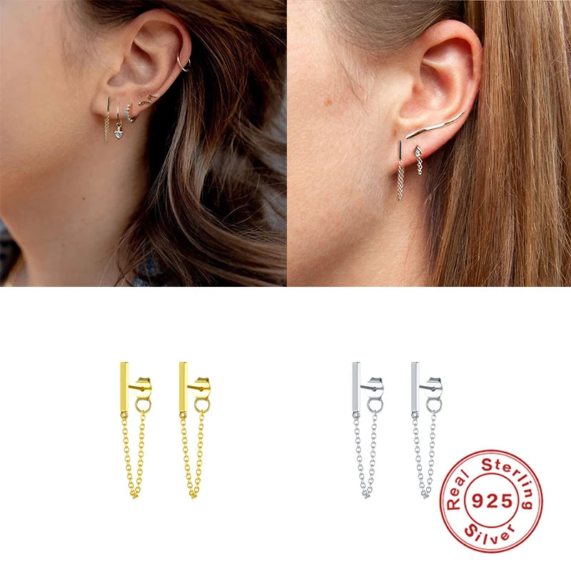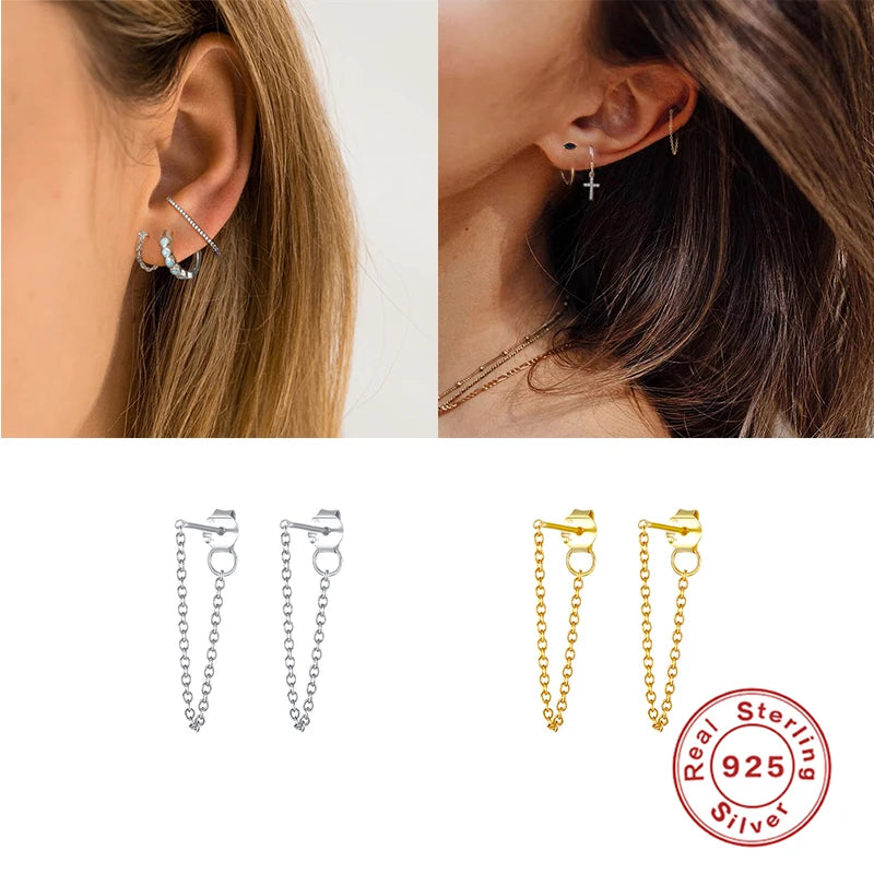 These elegant stud earrings are made of 925 sterling silver, perfect for weddings or everyday wear. The chain tassels add a touch of sophistication to any outfit.