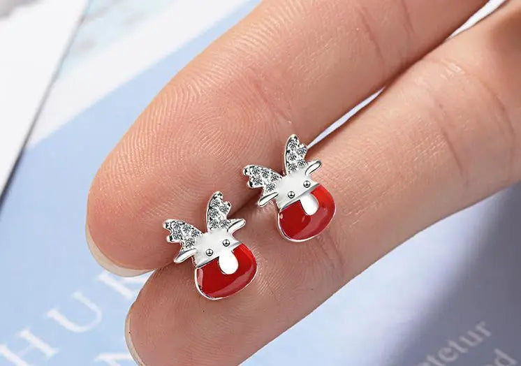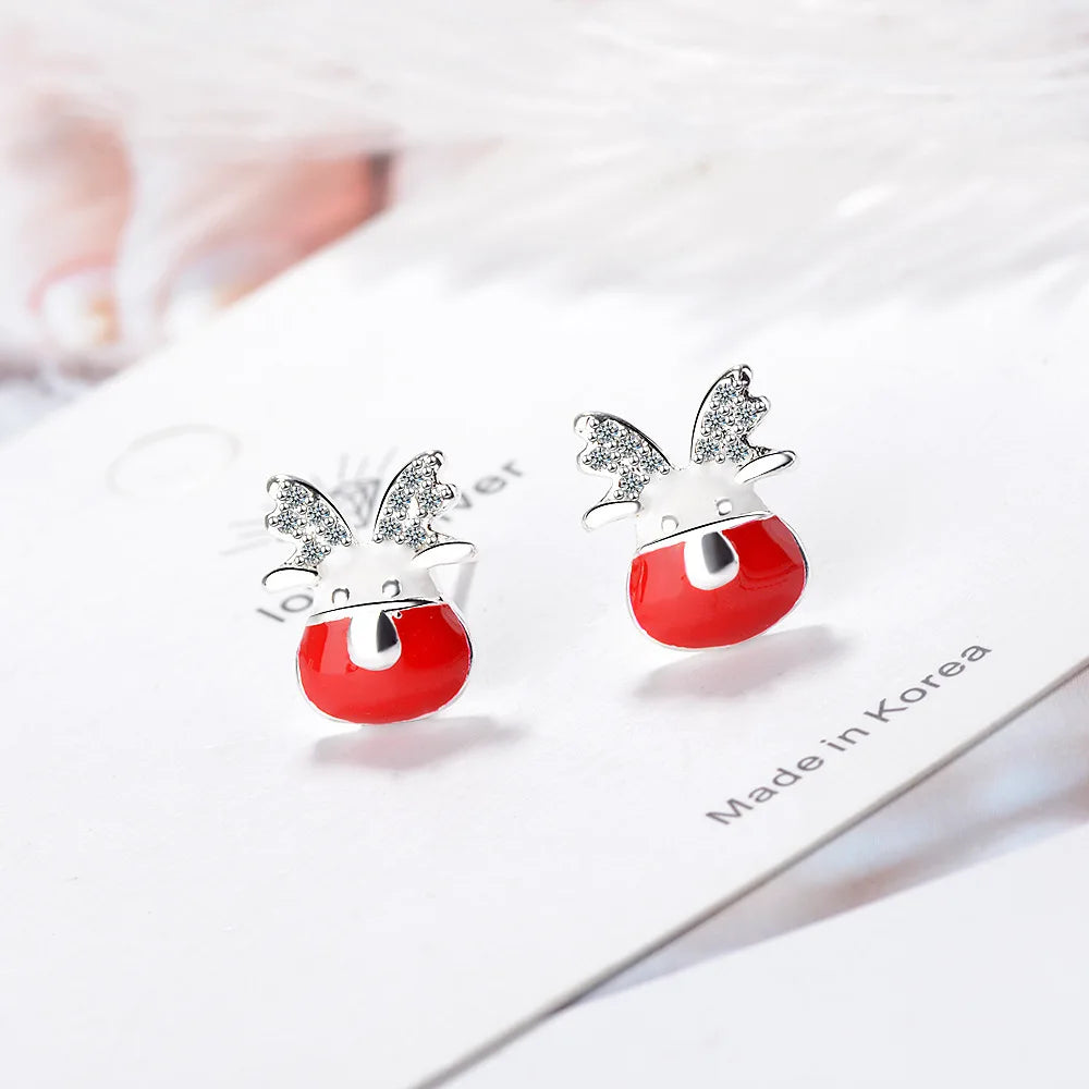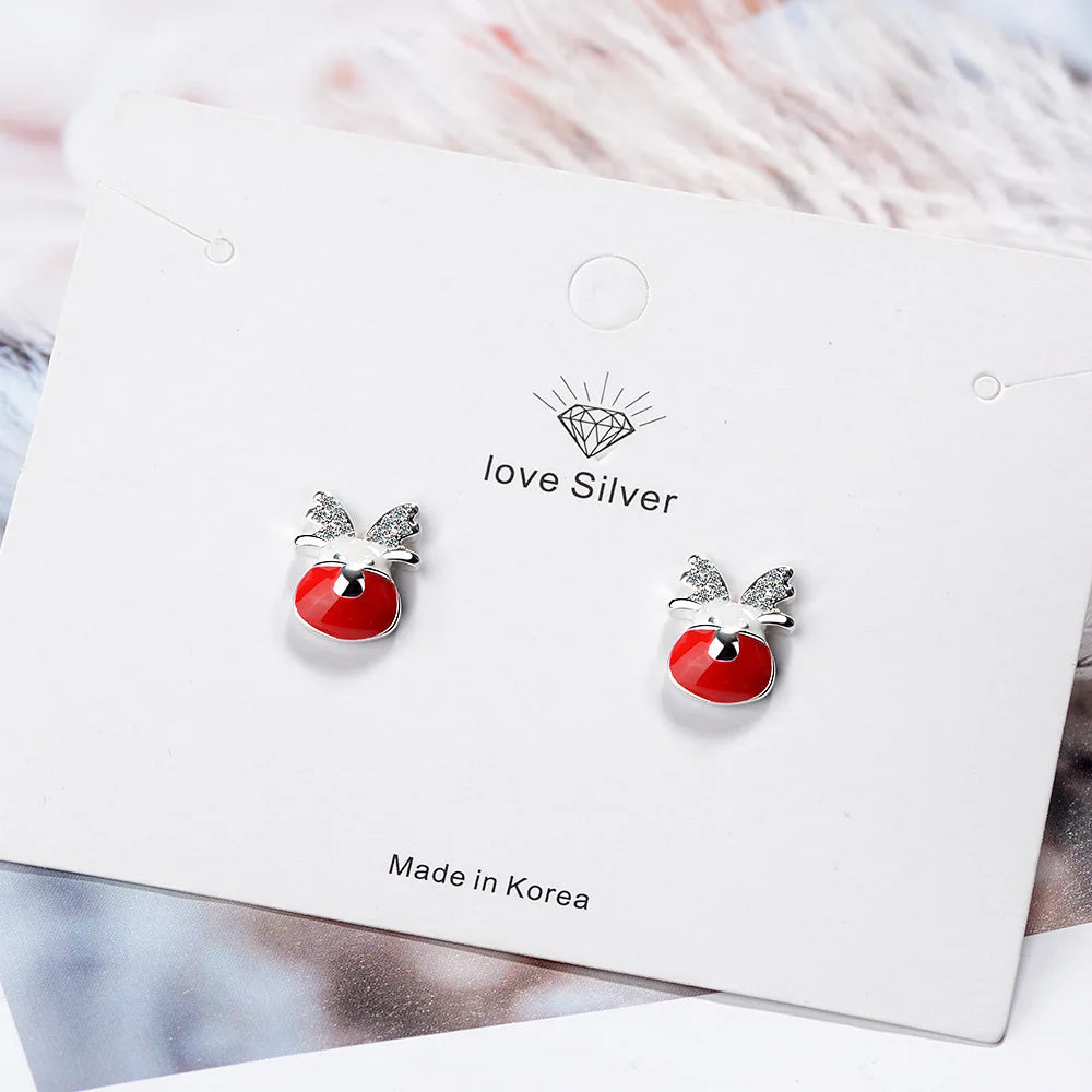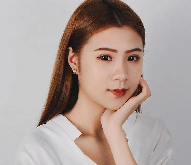 Add festive flair to your look with these adorable elk and snowflake earrings. Crafted from 925 sterling silver with red enamel detailing and micro CZ stones, these stud earrings are perfect for the holiday season.