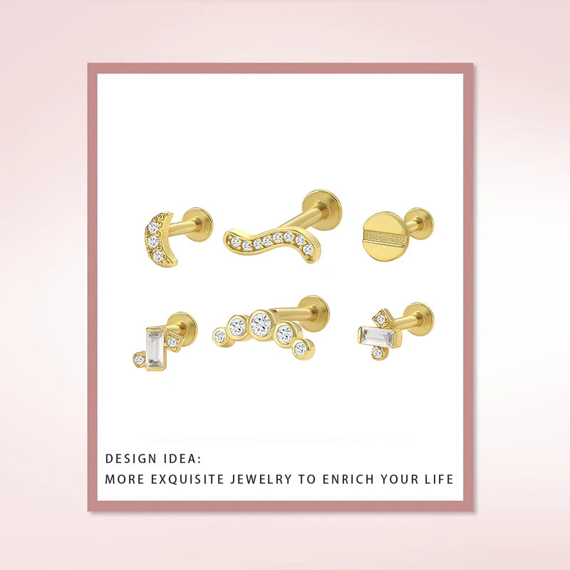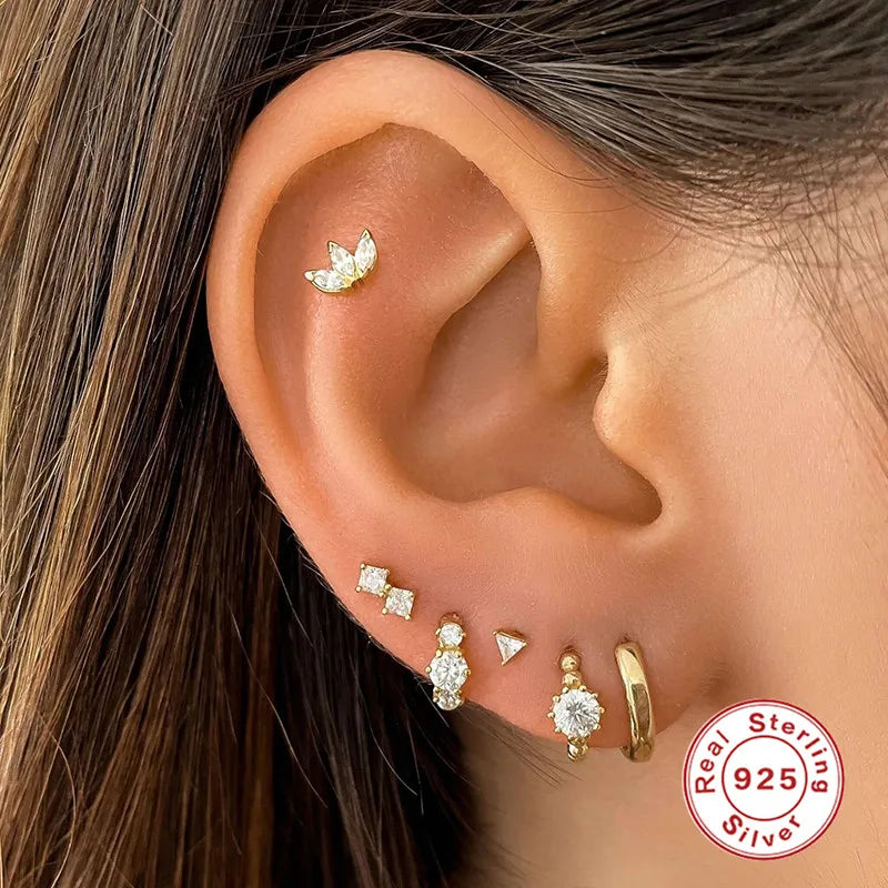 Chic and elegant sterling silver stud earrings with irregular clear crystals. Perfect for cartilage piercings.
