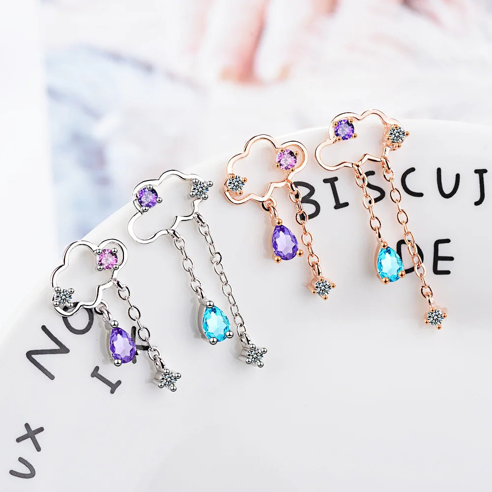 Add a touch of whimsy to your look with these sterling silver cloud asymmetry stud earrings. Perfect for everyday wear or special occasions.